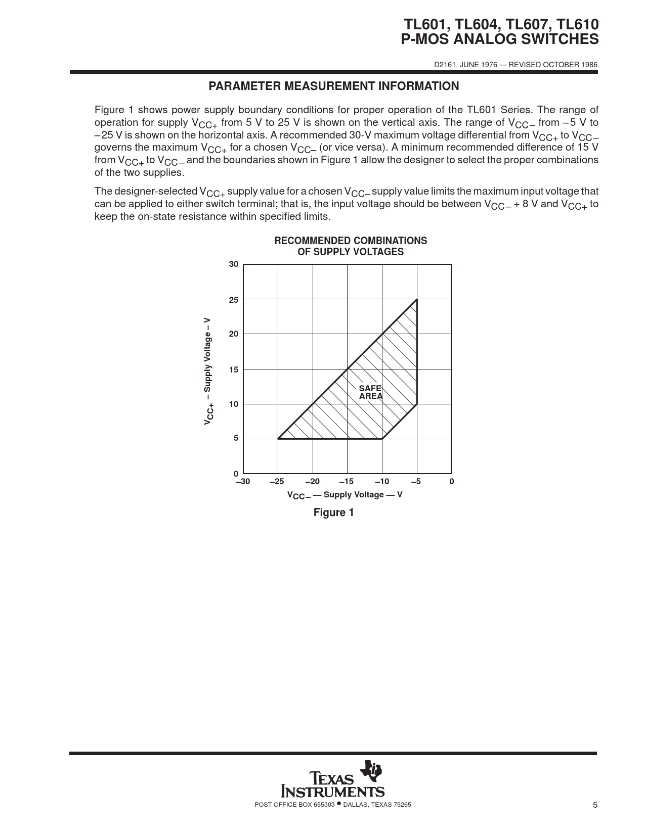 TL601, TL604, TL607, TL610 P-MOS ANALOG SWITCHES PARAMETER MEASUREMENT INFORMATION RECOMMENDED COMBINATIONS