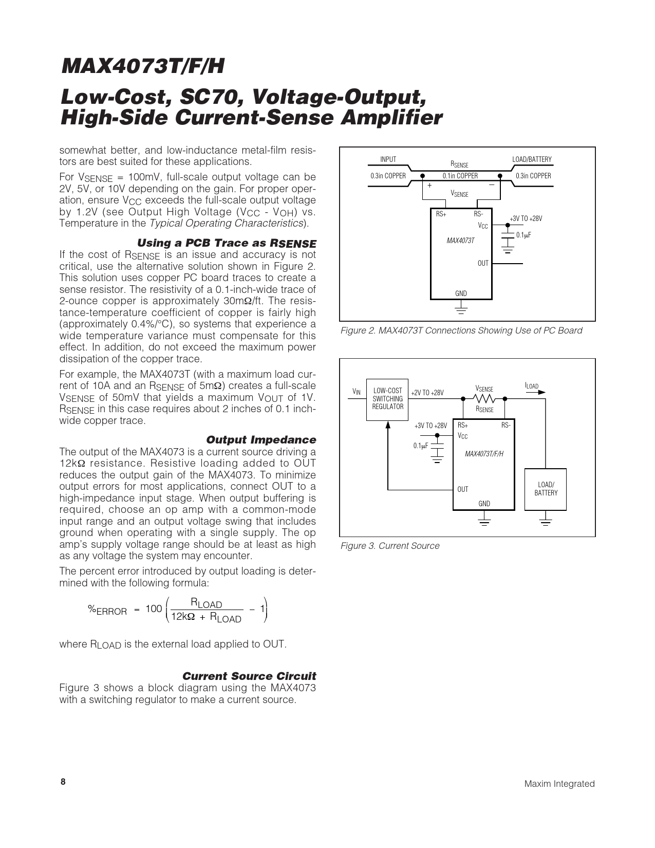 Pages / Page12 / 8 — MAX4073T/F/H. Low-Cost, SC70, Voltage-Output, High-Side Current-Sense …