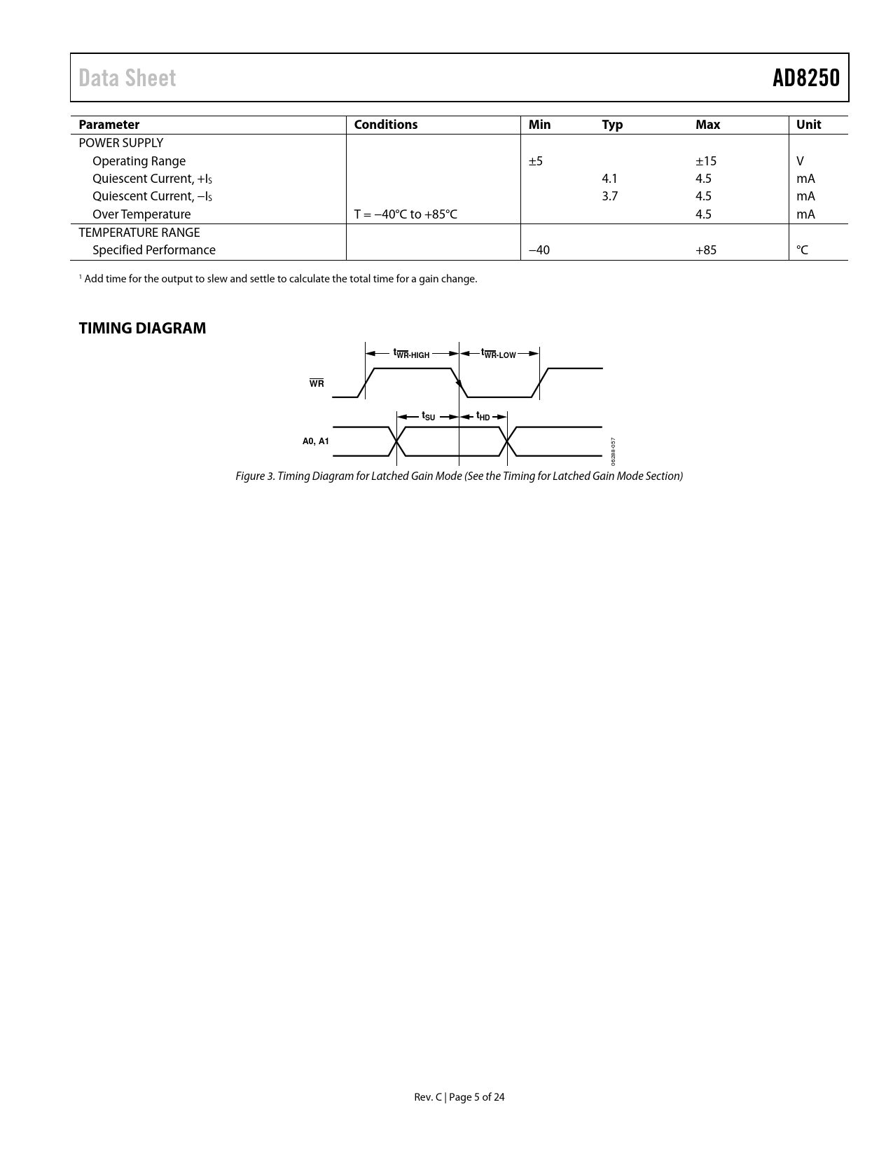 Data Sheet AD8250 Parameter Conditions Min Typ Max Unit TIMING DIAGRAM tWR-HIGH tWR-LOW tSU tHD A0, A1