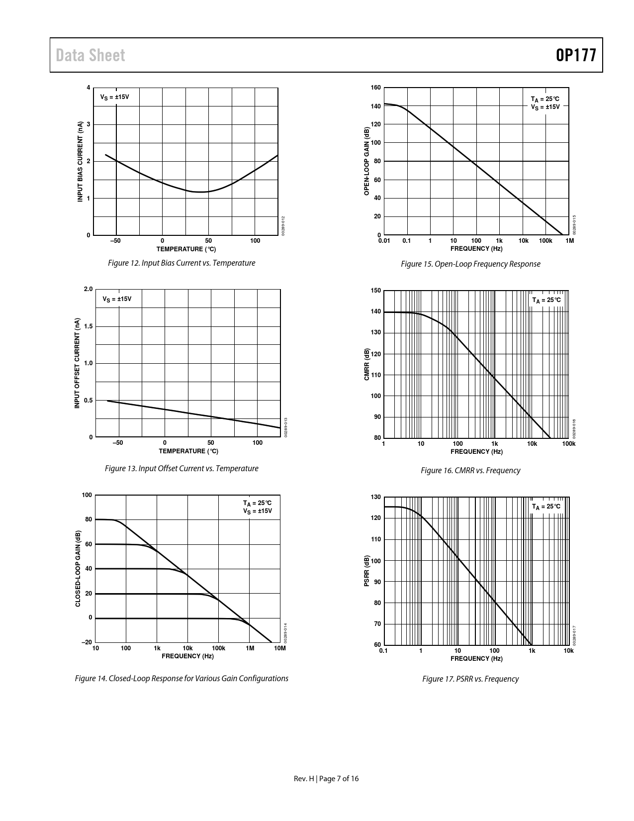 Data Sheet. OP177. 160. VS = ±15V. TA = 25°C. 140. A) 3. 120. n (. B) d. N ( 100 AI G. P 80. CURRE. O O. PEN O. INP. –50. 100. 0.01. 0.1. 10k. 100k
