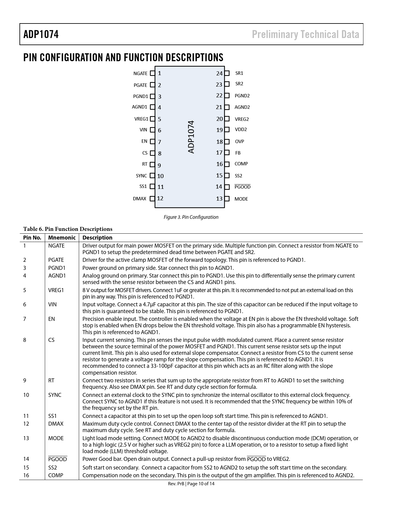Pages / Page14 / 10 — ADP1074. Preliminary Technical Data. PIN CONFIGURATION AND FUNCTION …