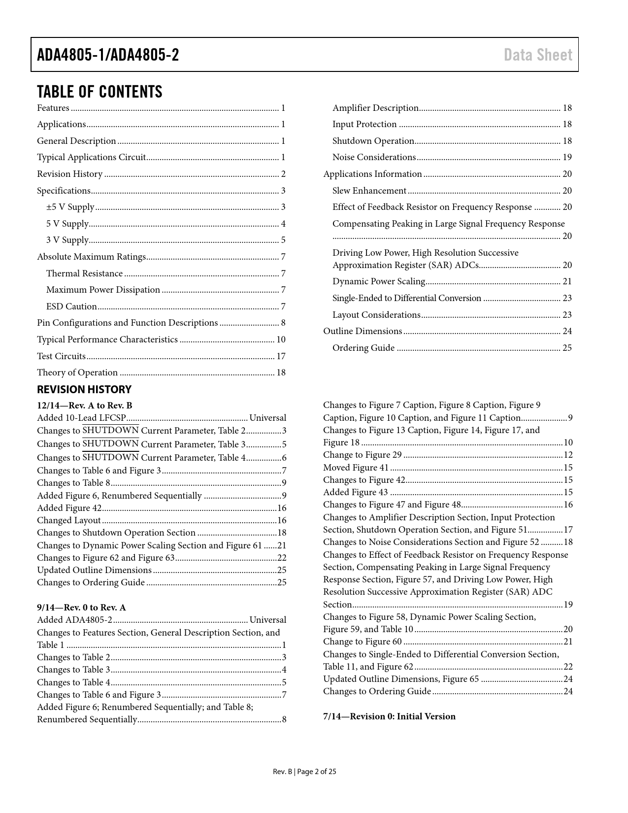 Pages / Page25 / 2 — ADA4805-1/ADA4805-2. Data Sheet. TABLE OF CONTENTS. REVISION HISTORY. …