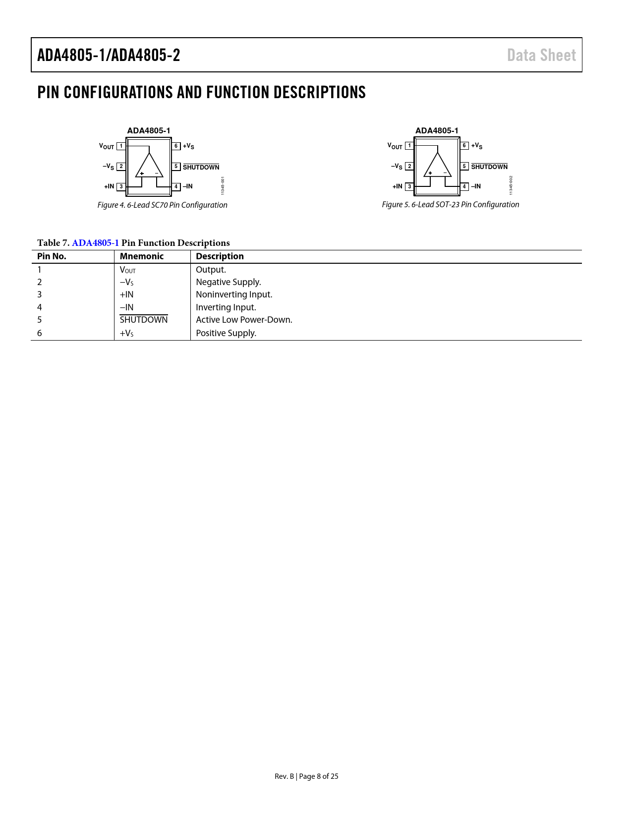 | Pages / Page | 25 / 8 — ADA4805-1/ADA4805-2. Data Sheet. PIN CONFIGURATIONS AND FUNCTION … |