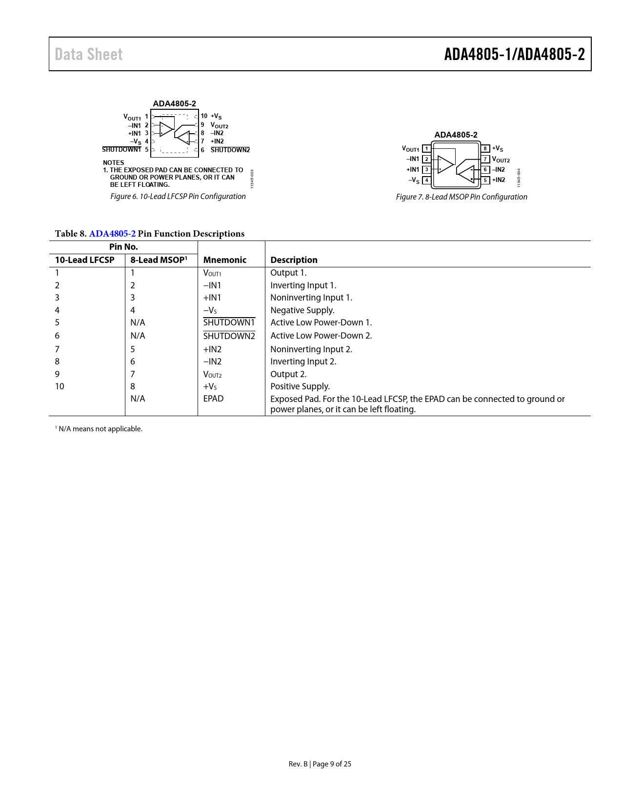 Pages / Page25 / 9 — Data Sheet. ADA4805-1/ADA4805-2. ADA4805-2. OUT1. 10 +VS. –IN1 2. 9 …