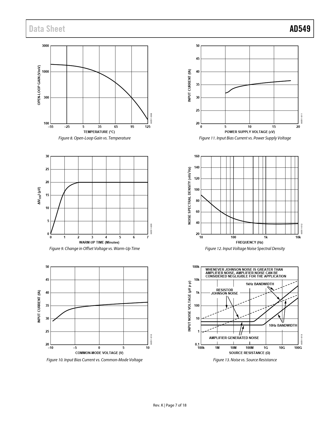 Data Sheet. AD549. 3000. V) /m 1000. fA). P G O O. CURRE. 300. PEN. INP. 100. –55. –25. 125. TEMPERATURE (°C). POWER SUPPLY VOLTAGE (±V). 160. 140. / Hz V