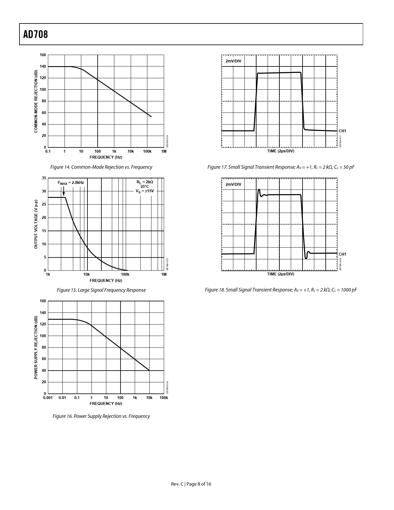AD708. 160. 2mV/DIV. 140. ) B d 120. N ( IO CT 100 JE RE. DE O -M. N O M. M CO. CH1. 0.1. 100. 10k. 100k. TIME (2µs/DIV). FREQUENCY (Hz). FMAX = 2.8kHz