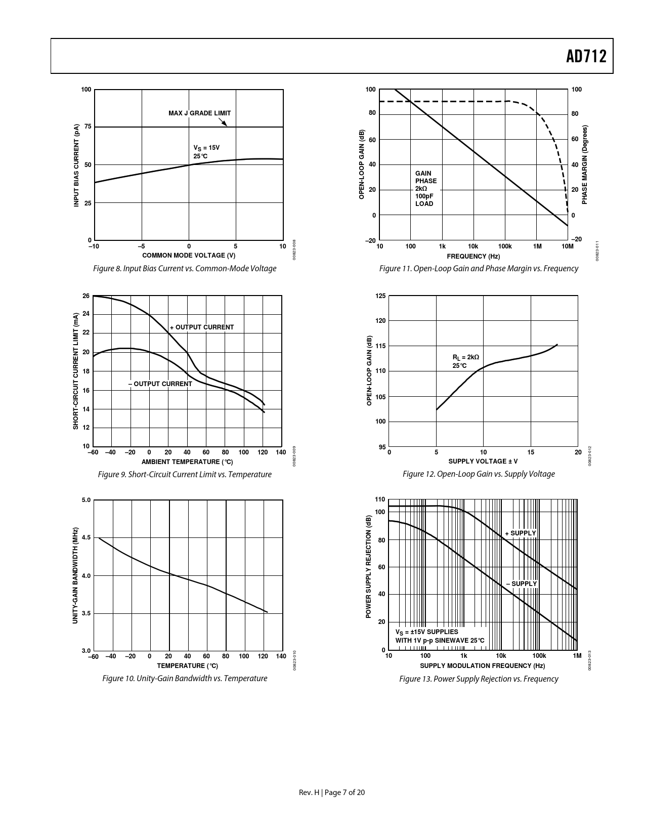 82 00 00 Figure 9. Short-Circuit Current Limit vs. Temperature Figure 12. Open-Loop Gain vs. Supply Voltage