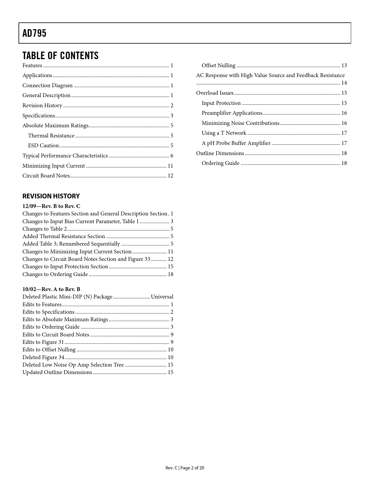 AD795 TABLE OF CONTENTS REVISION HISTORY 12/09—Rev B to Rev C 10/02—Rev A to Rev B