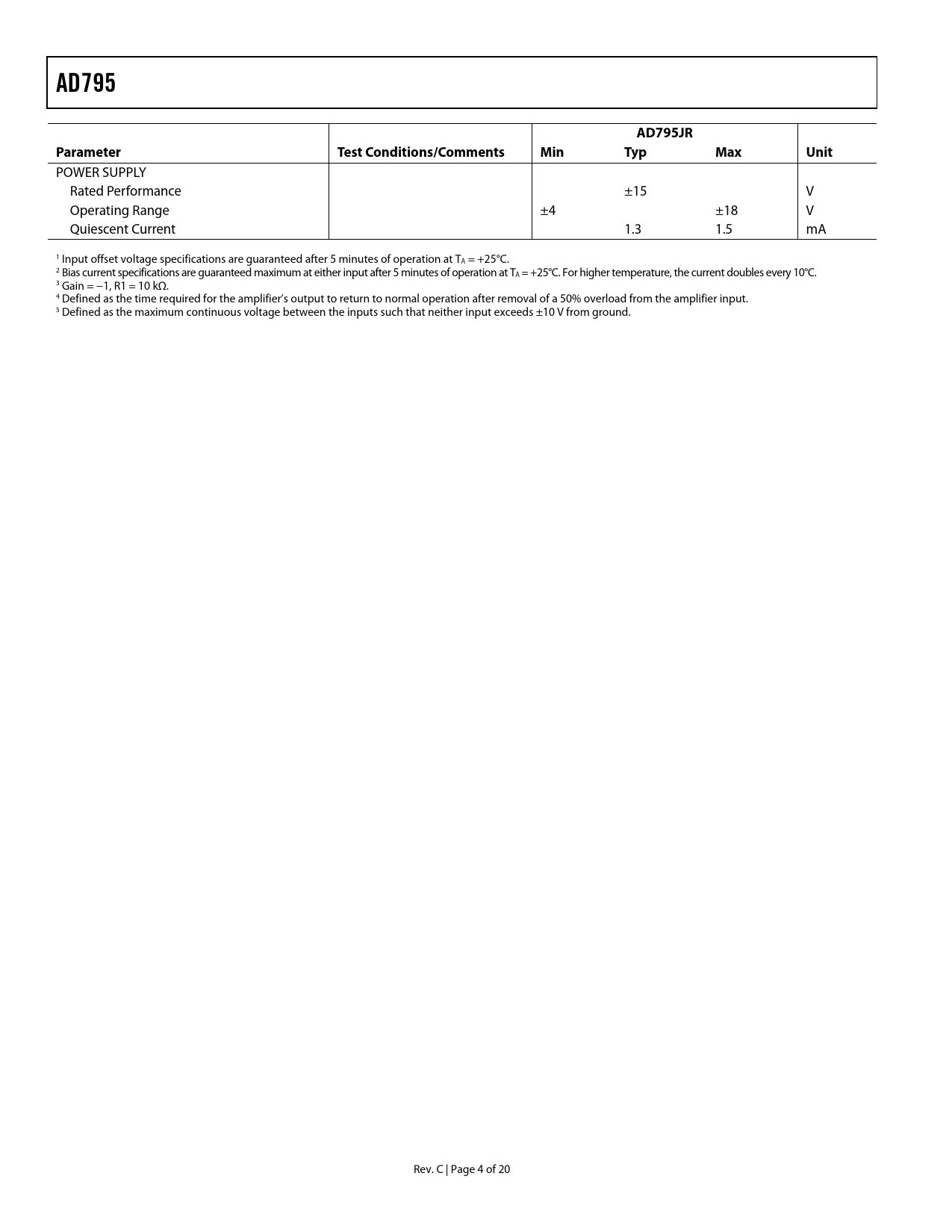 Pages / Page21 / 5 — AD795. AD795JR. Parameter. Test Conditions/Comments. Min. Typ. Max. Unit