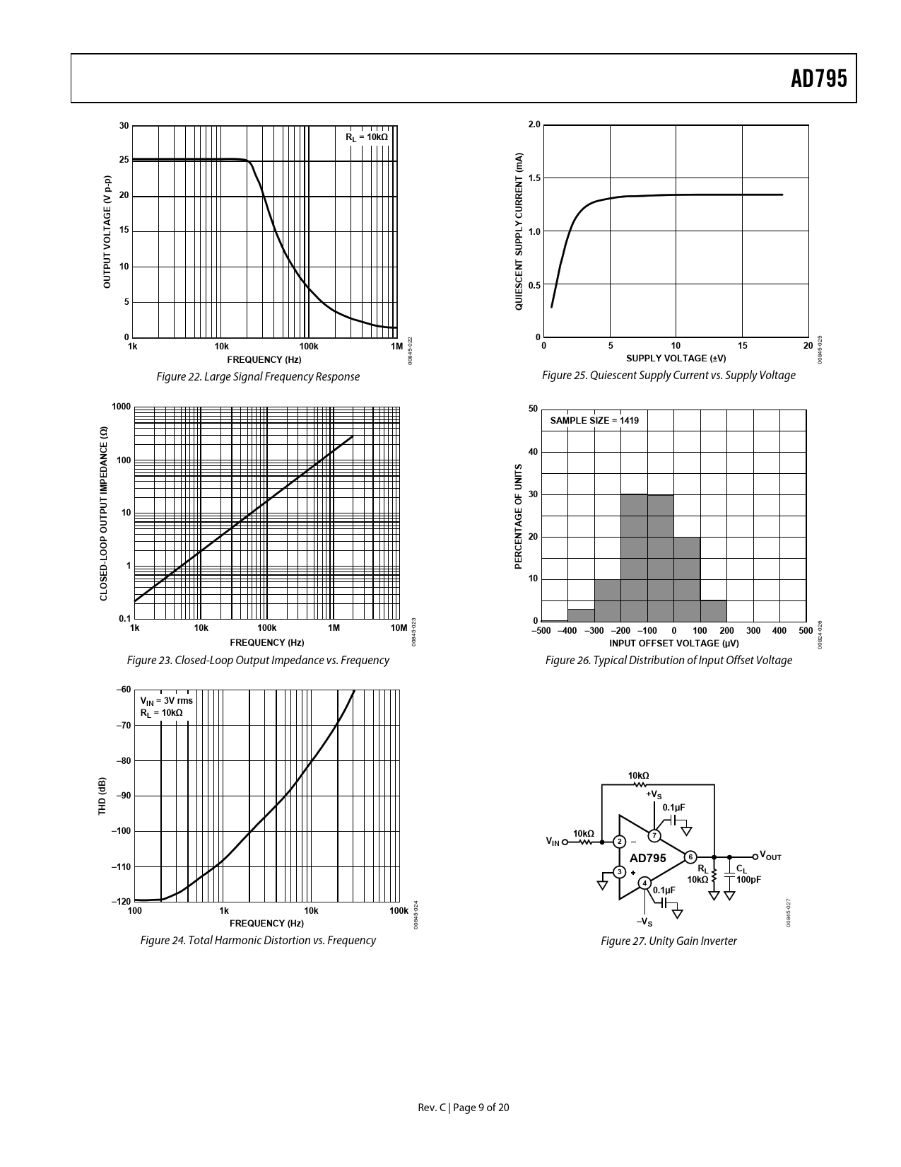 AD795. 2.0. RL = 10kΩ. A) m (. 1.5. p- 20. V ( E G A. CURRE. L 1.0. O V. U 10. NT CE. S 0.5. UI Q. 10k. 100k. FREQUENCY (Hz). SUPPLY VOLTAGE (±V). 1000