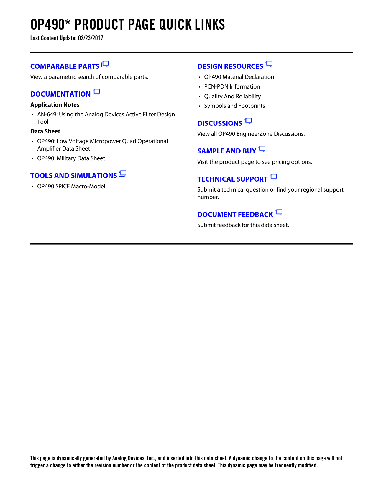 OP490* PRODUCT PAGE QUICK LINKS Last Content Update: 02/23/2017. COMPARABLE PARTS. DESIGN RESOURCES. DOCUMENTATION