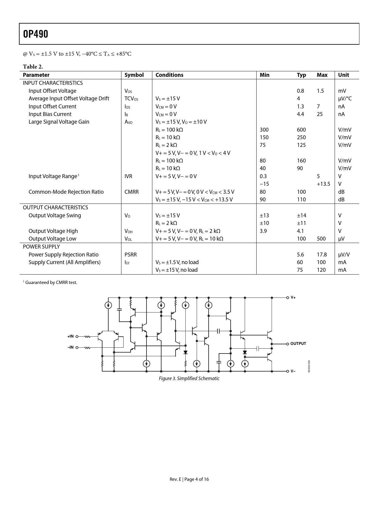 OP490 Table 2 Parameter Symbol Conditions Min Typ Max Unit +IN OUTPUT –IN