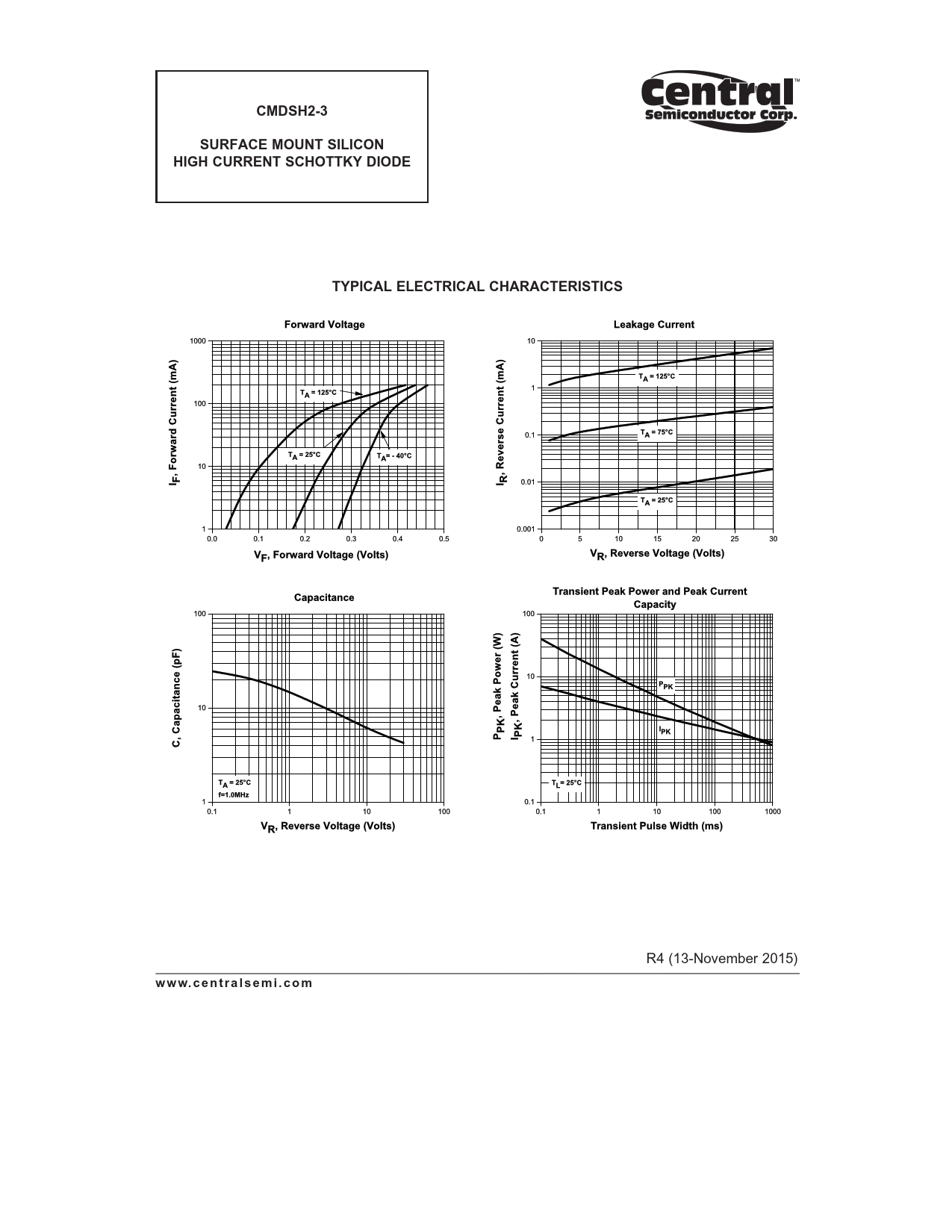 CMDSH2-3. SURFACE MOUNT SILICON. HIGH CURRENT SCHOTTKY DIODE. TYPICAL ELECTRICAL CHARACTERISTICS
