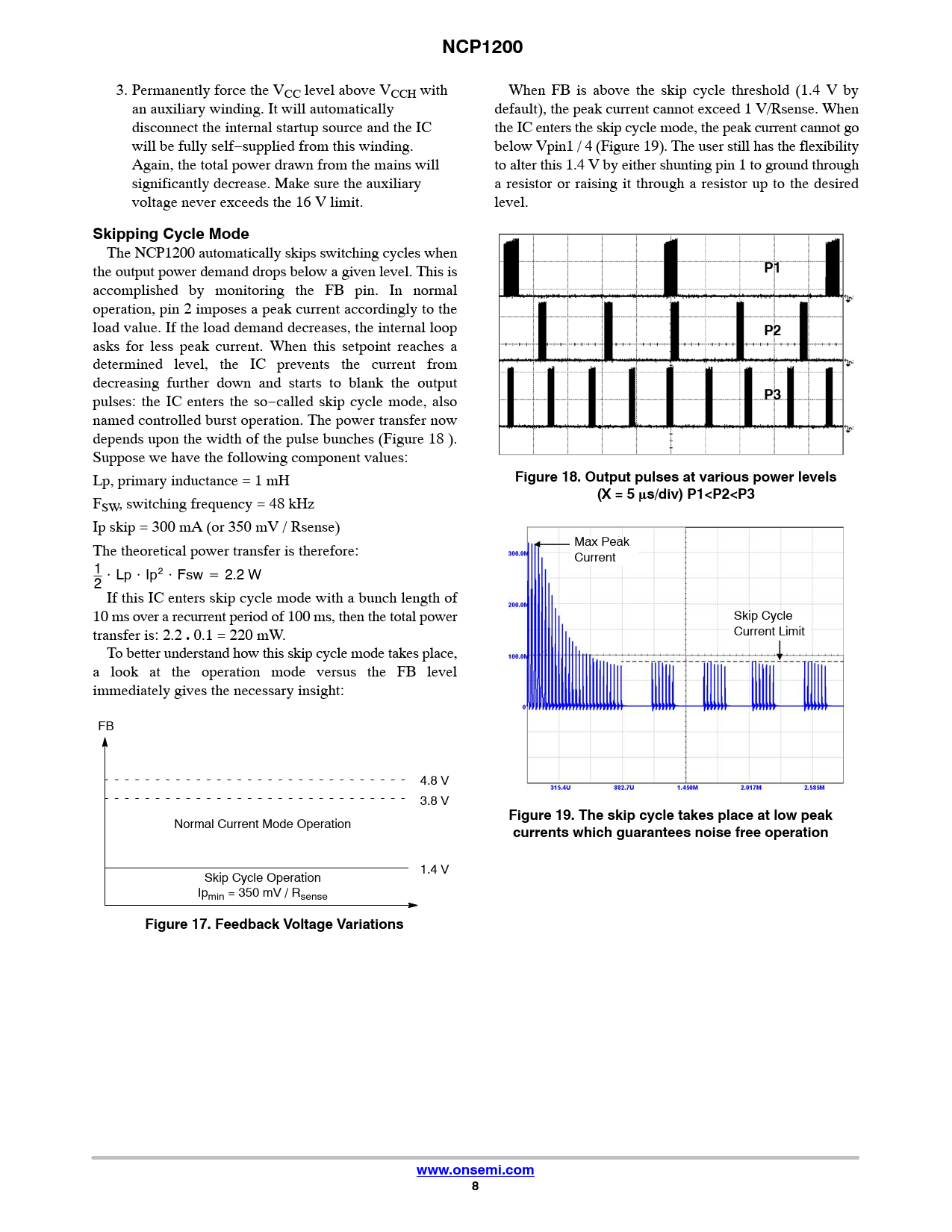 Pages / Page16 / 8 — NCP1200. Skipping Cycle Mode. Figure 18. Output pulses at various power …
