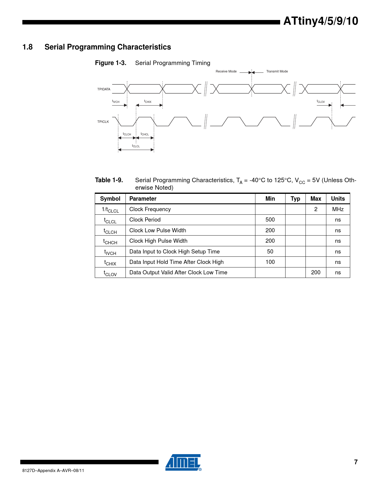 ATtiny4/5/9/10. 1.8. Serial Programming Characteristics. Figure 1-3. Table 1-9. Symbol. Parameter. Min. Typ. Max. Units