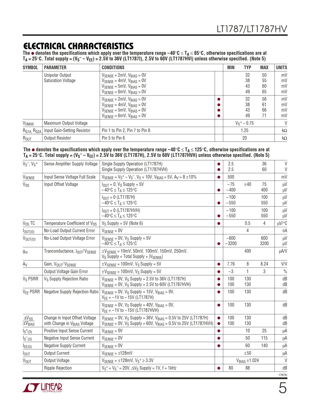 C. Total supply = (VS – VEE) = 2.5V to 36V (LT1787H), 2.5V to 60V (LT1787HVH) unless otherwise specified. (Note 5)