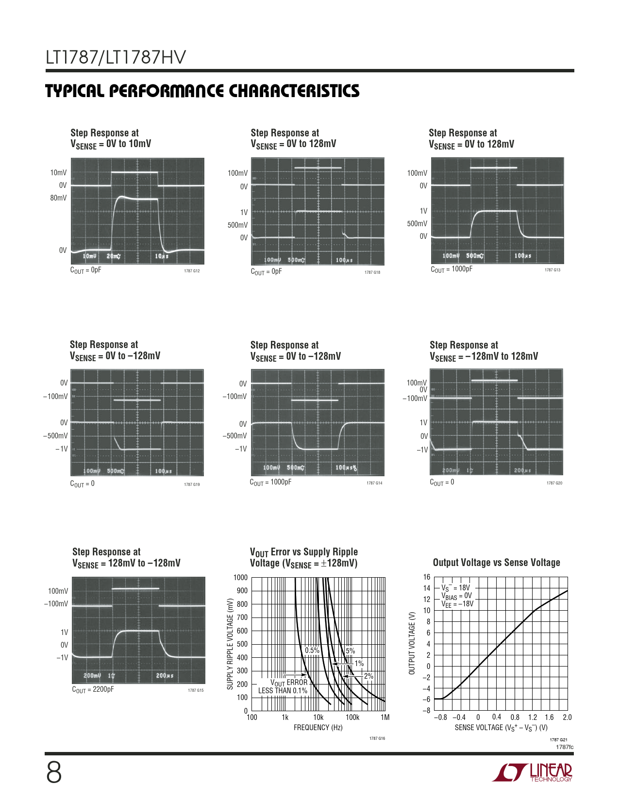 10mV 100mV 100mV 0V 0V 0V 80mV 1V 1V 500mV 500mV 0V 0V 0V COUT = 0pF 1787 G12 C C OUT = 1000pF 1787 G13 OUT = 0pF 1787 G18