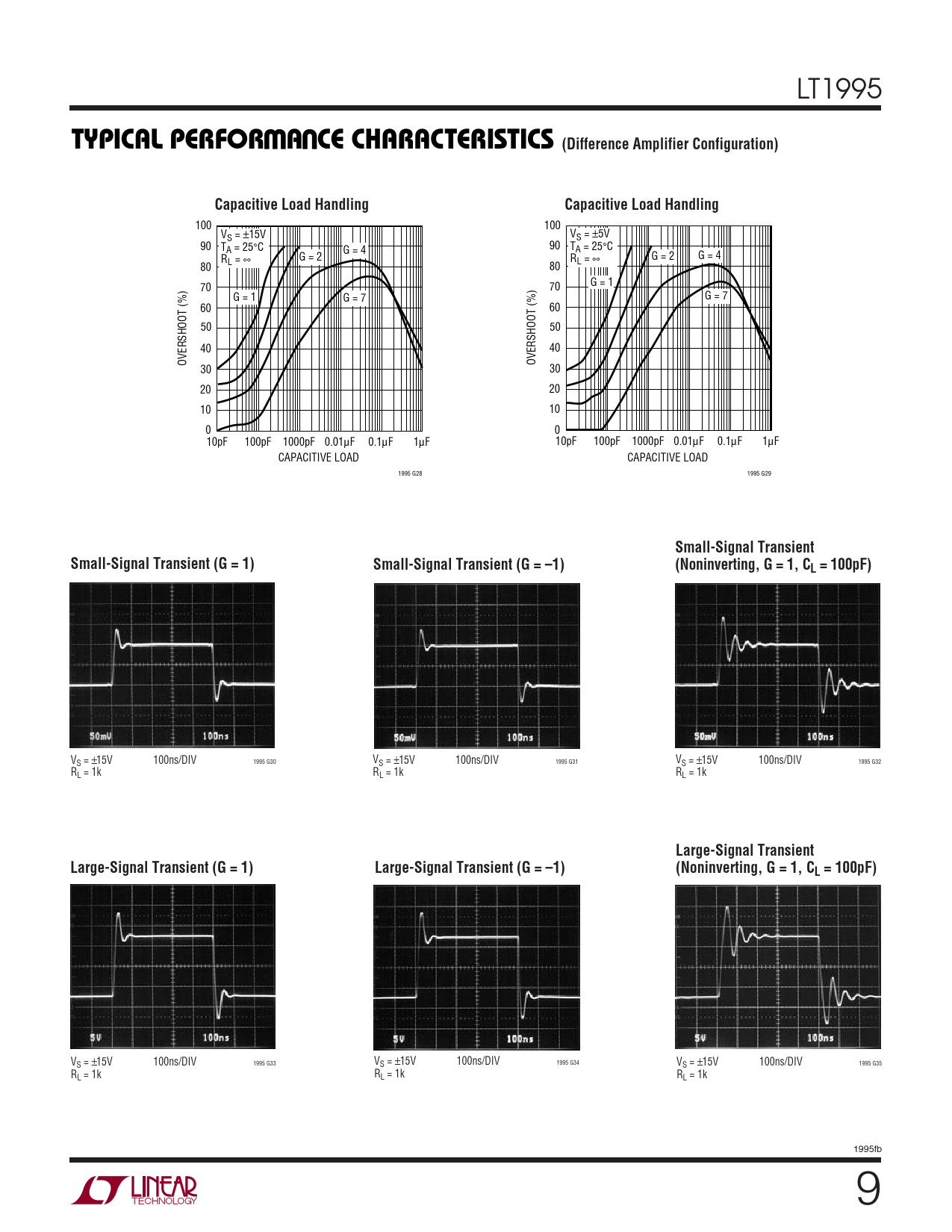 VS = ±15V 100ns/DIV 1995 G33 VS = ±15V 100ns/DIV 1995 G34 VS = ±15V 100ns/DIV 1995 G35 RL = 1k RL = 1k RL = 1k 1995fb 9