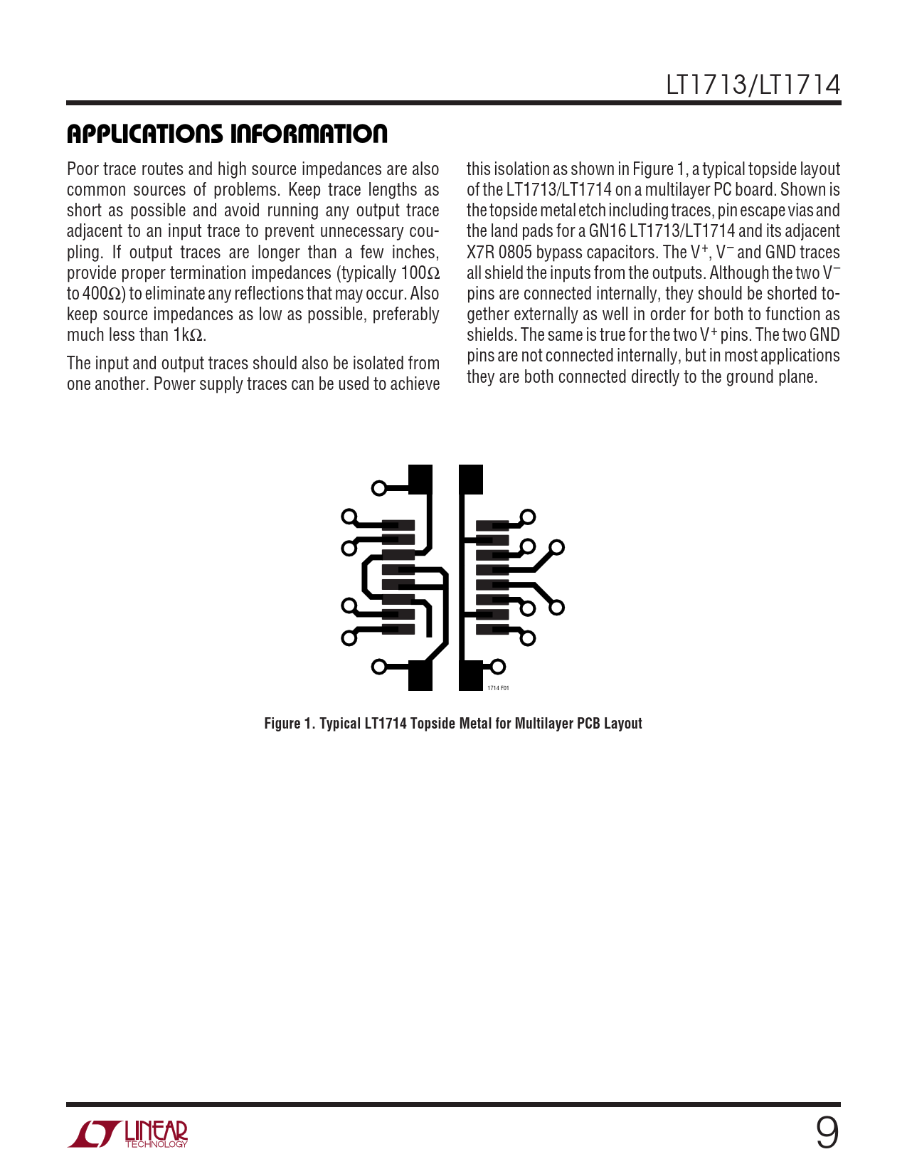 Pages / Page16 / 9 — APPLICATIO S I FOR ATIO. Figure 1. Typical LT1714 Topside Metal for …