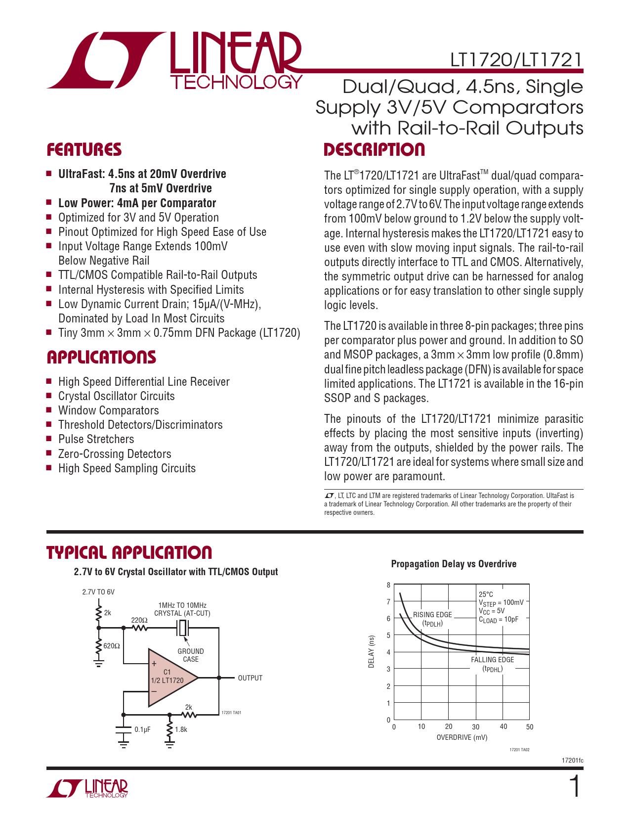 The LT®1720/LT1721 are UltraFastTM dual/quad compara-