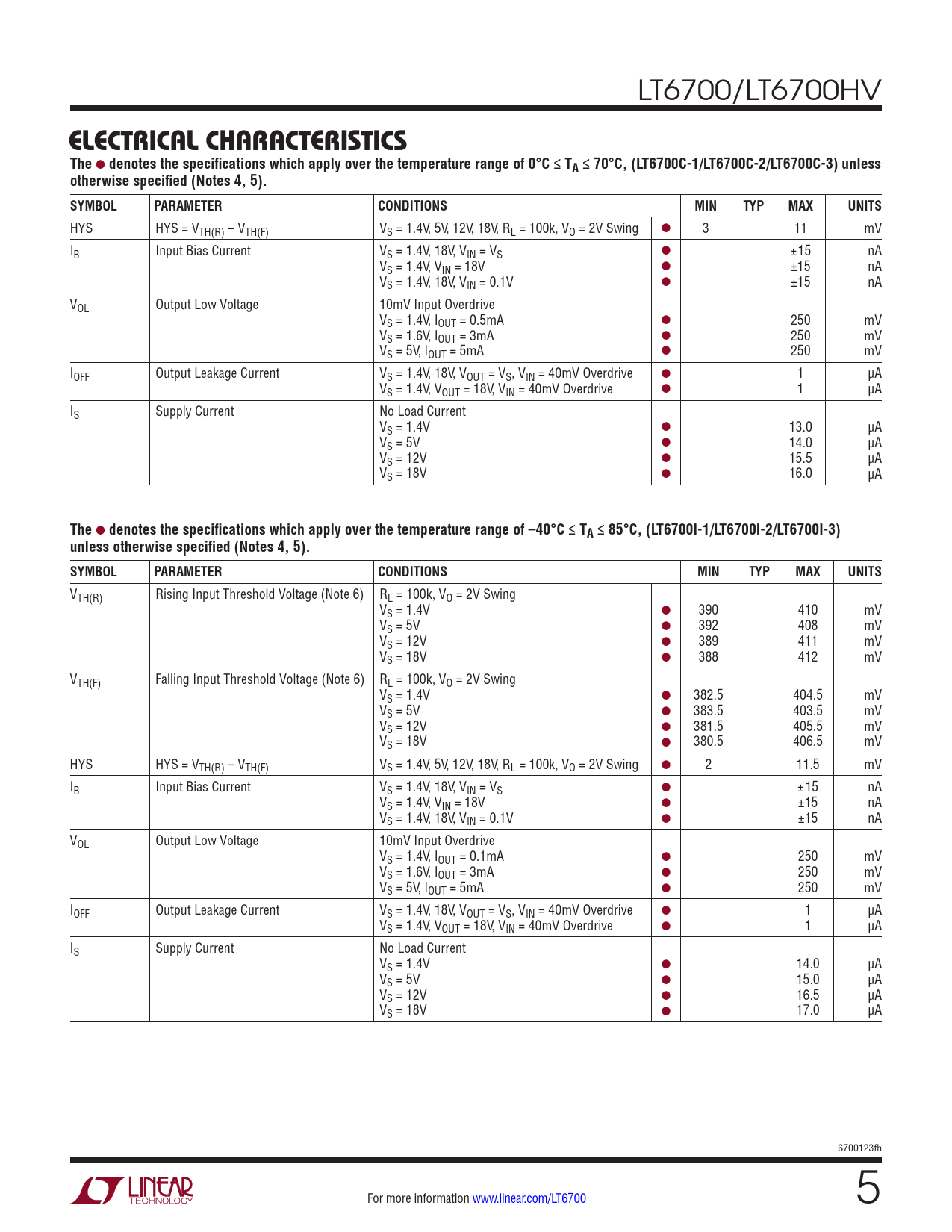 Datasheet LT6700, LT6700HV (Analog Devices) - 5