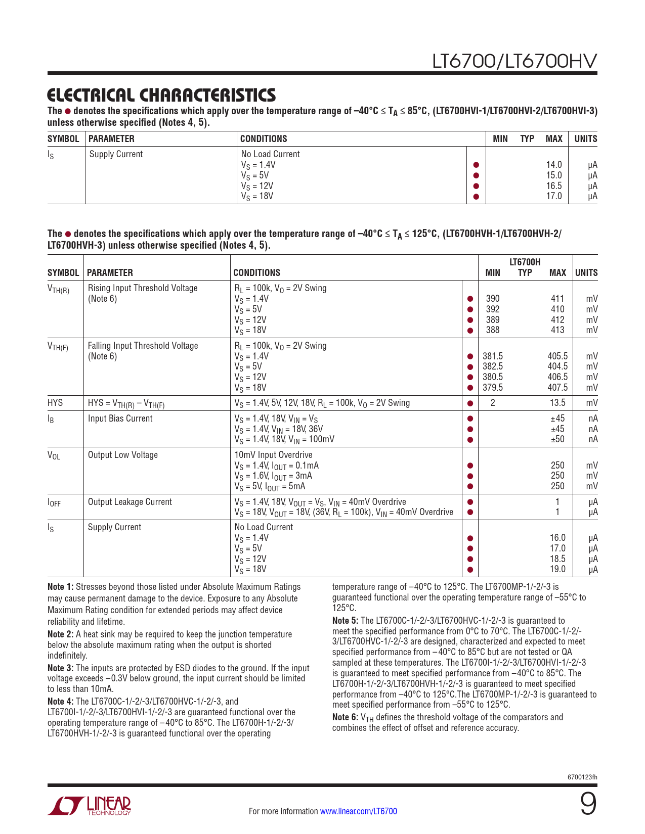 The LT6700C-1/-2/-3/LT6700HVC-1/-2/-3 is guaranteed to