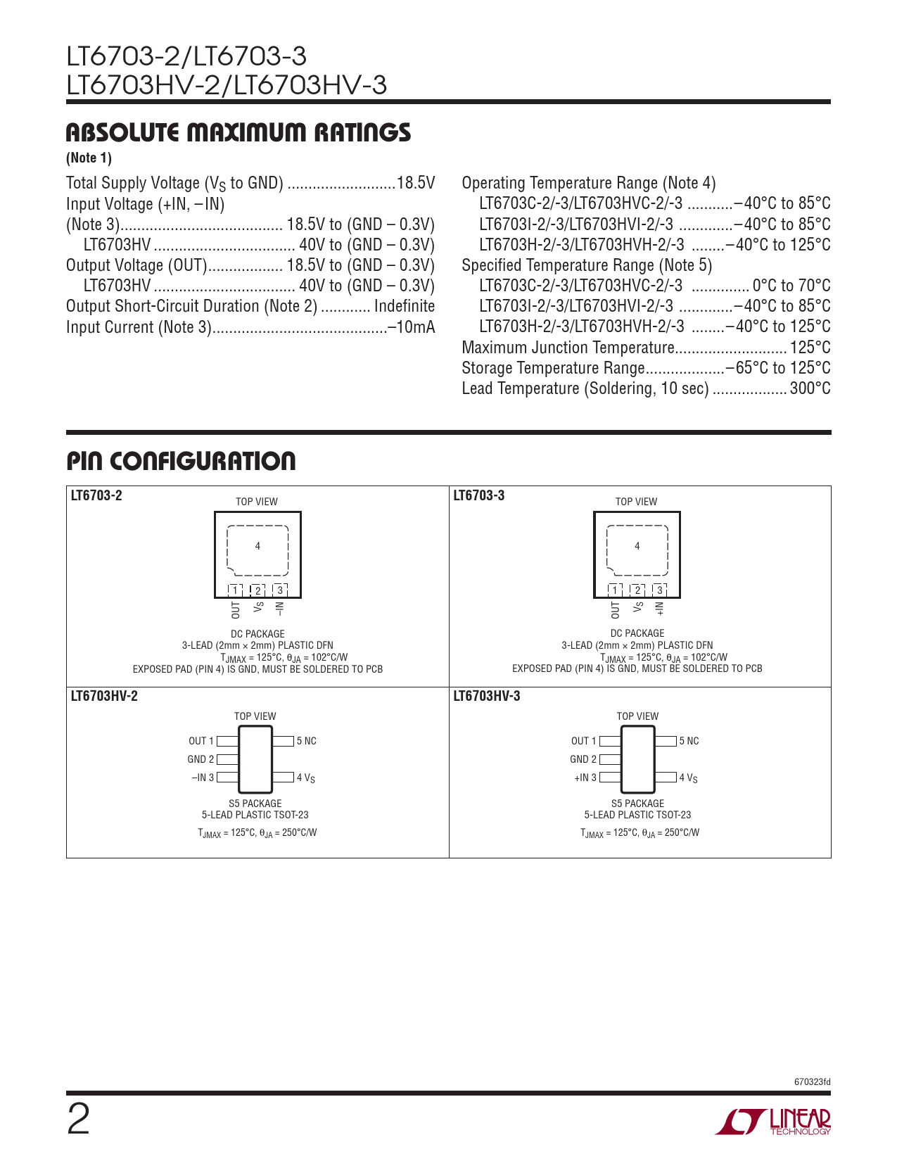 Pages / Page14 / 2 — ABSOLUTE MAXIMUM RATINGS. (Note 1). PIN CONFIGURATION. LT6703-2. …