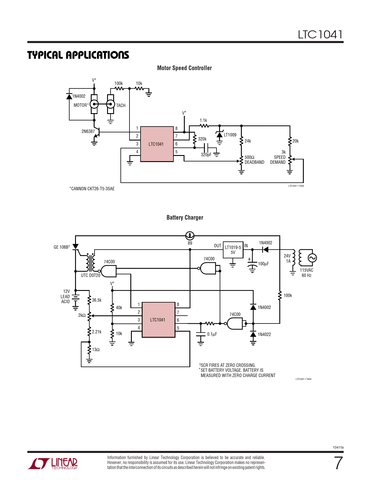 Pages / Page8 / 7 — TYPICAL APPLICATIO S. Motor Speed Controller. Battery Charger