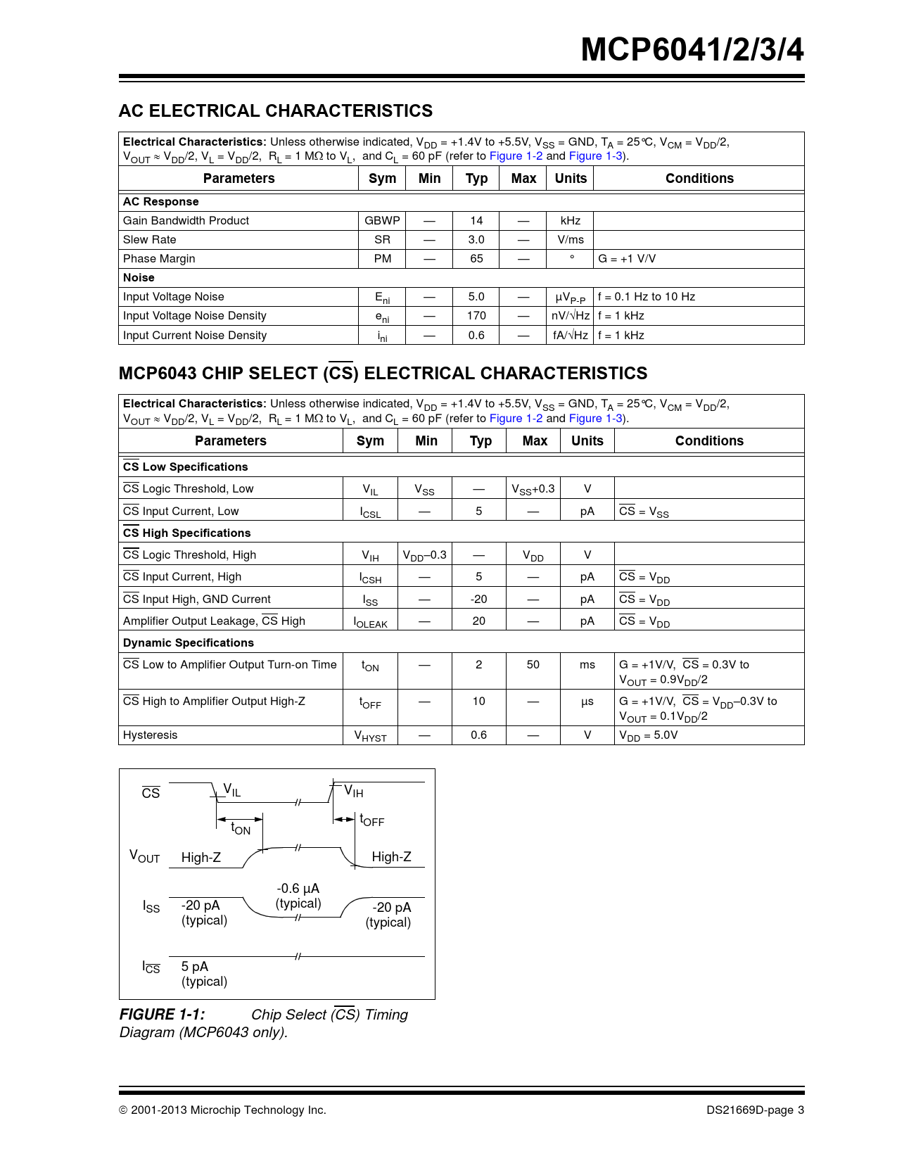 40 /3 — MCP6041/2/3/4. AC ELECTRICAL CHARACTERISTICS. Electrical …