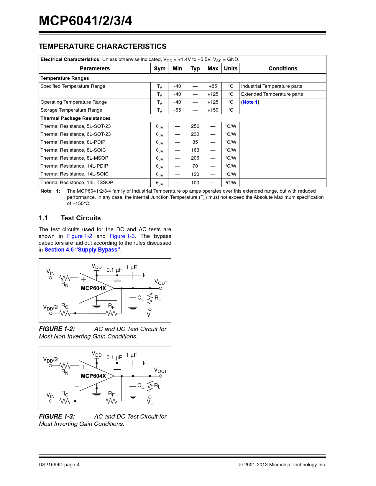 40 /4 — MCP6041/2/3/4. TEMPERATURE CHARACTERISTICS. Electrical Characteristics:. …