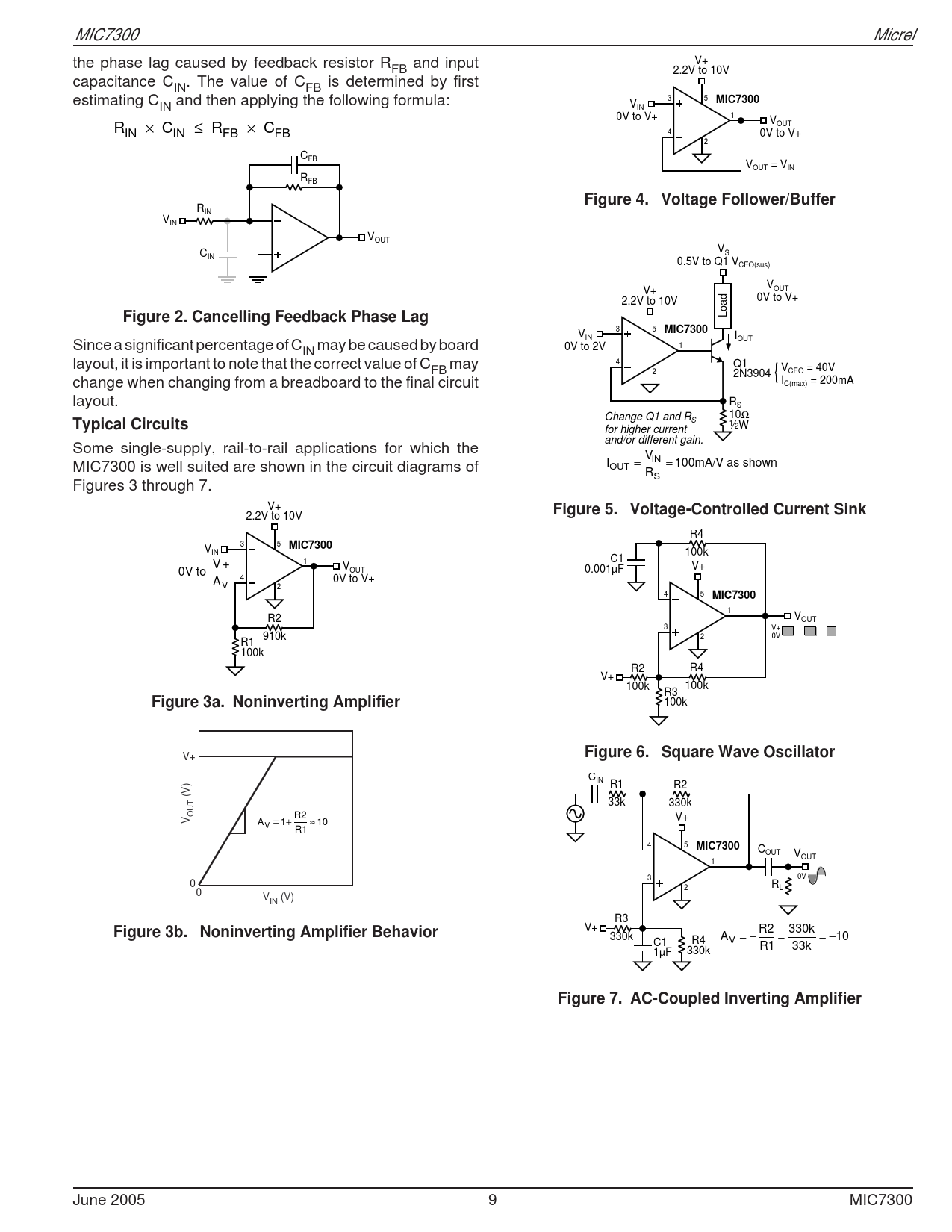 MIC7300. Figure 4. Voltage Follower/Buffer. Figure 2. Cancelling Feedback Phase Lag. Typical Circuits