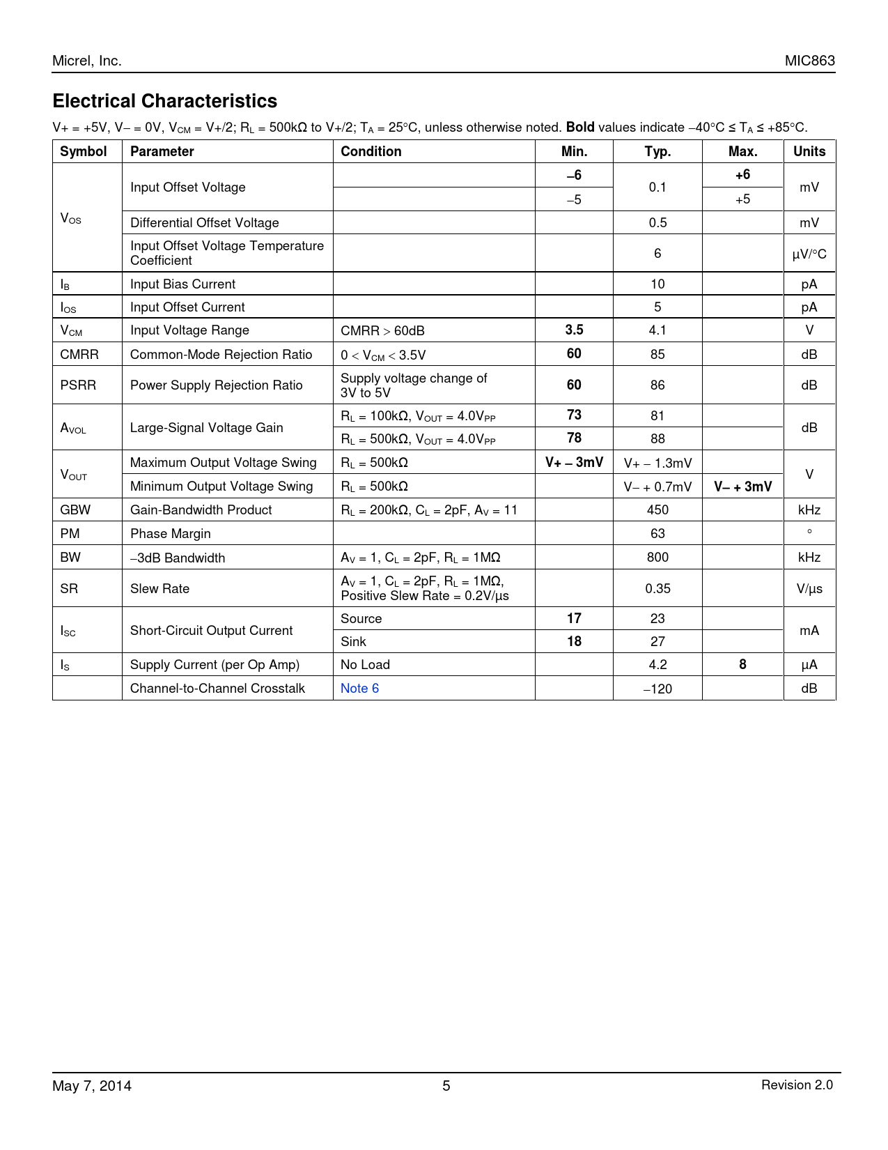 | Pages / Page | 17 / 5 — Micrel, Inc. MIC863 Electrical Characteristics |