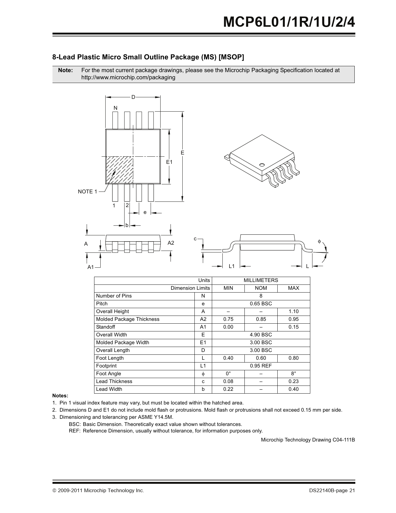 MCP6L01/1R/1U/2/4" # $%## . # #$ #/! - 0 # 1/%# #!# ##+22--- 2/ D N E E1 NOTE 1 1 2 e b c φ A A2 A1 L1 L 3# 44"