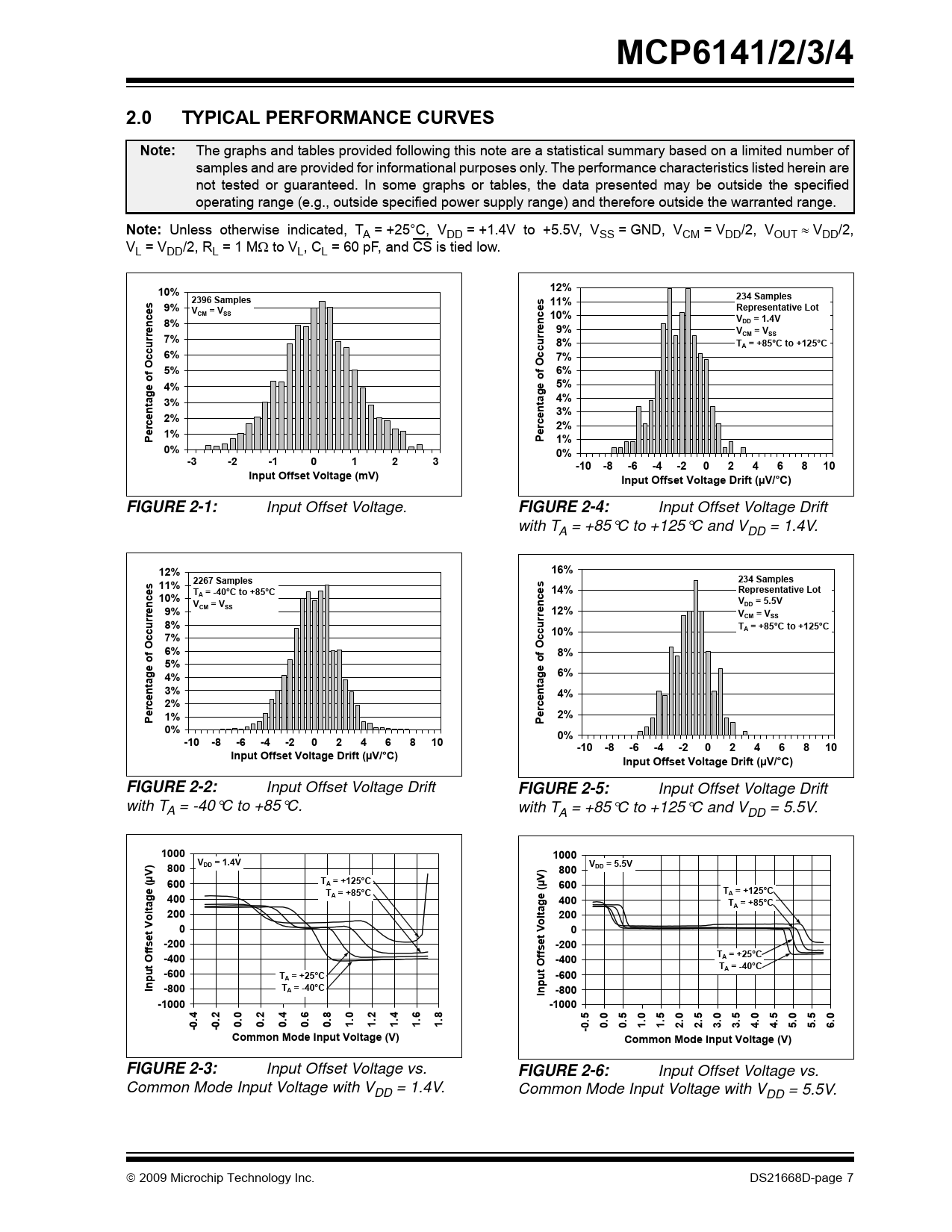 MCP6141/2/3/4. 2.0. TYPICAL PERFORMANCE CURVES. Note:. 10%. 12%. 2396 Samples. s 11%. 234 Samples. Representative Lot. CM = VSS. nc 8%. nce