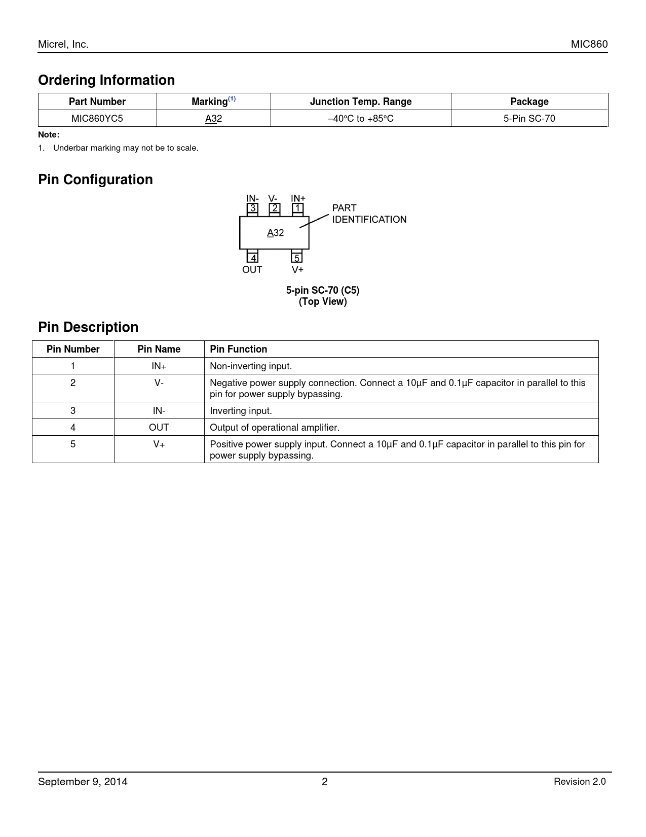 Pages / Page13 / 2 — Micrel, Inc. MIC860 Ordering Information