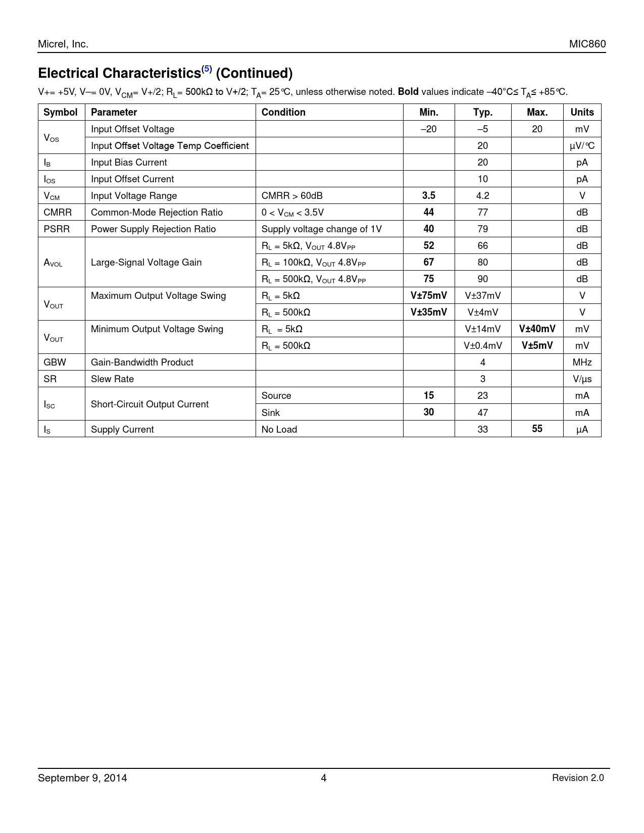 Micrel, Inc. MIC860 Electrical Characteristics(5) (Continued)