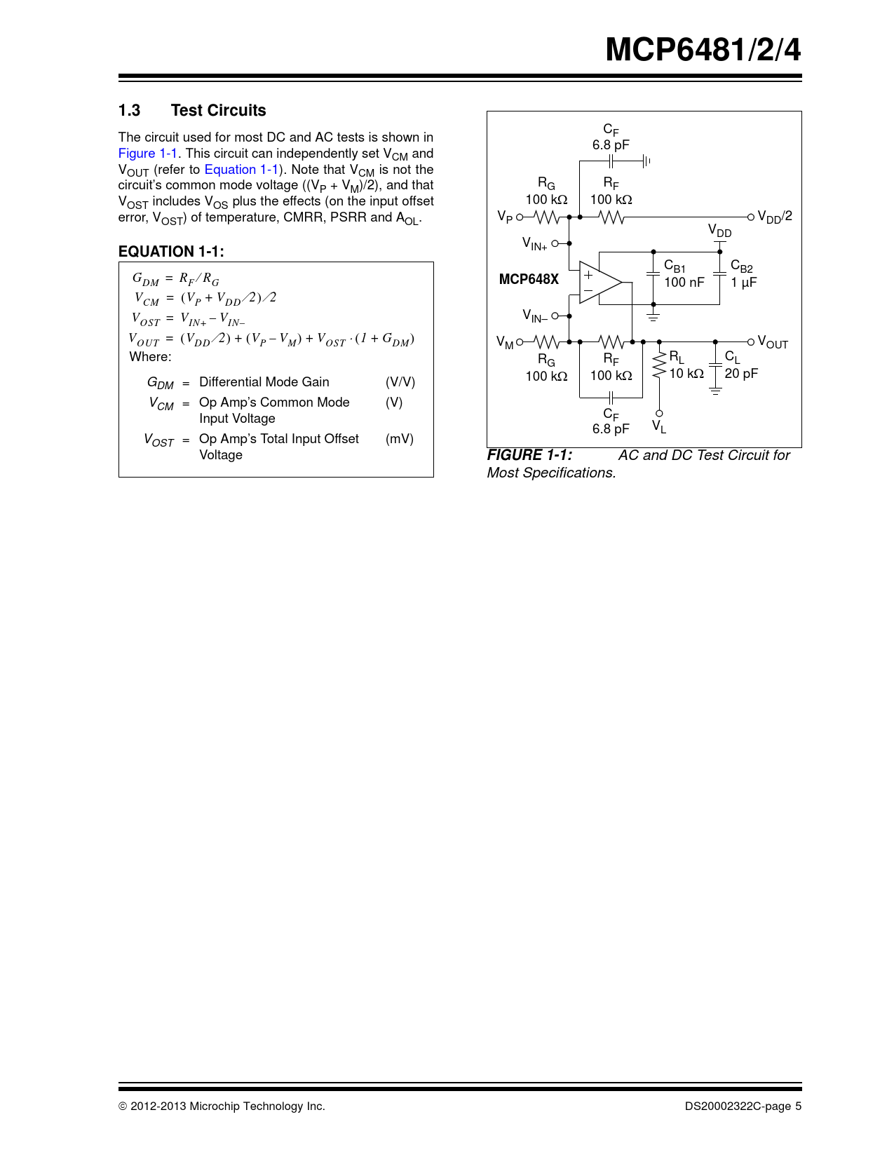 MCP6481/2/4. 1.3. Test Circuits. EQUATION 1-1:. MCP648X. FIGURE 1-1: