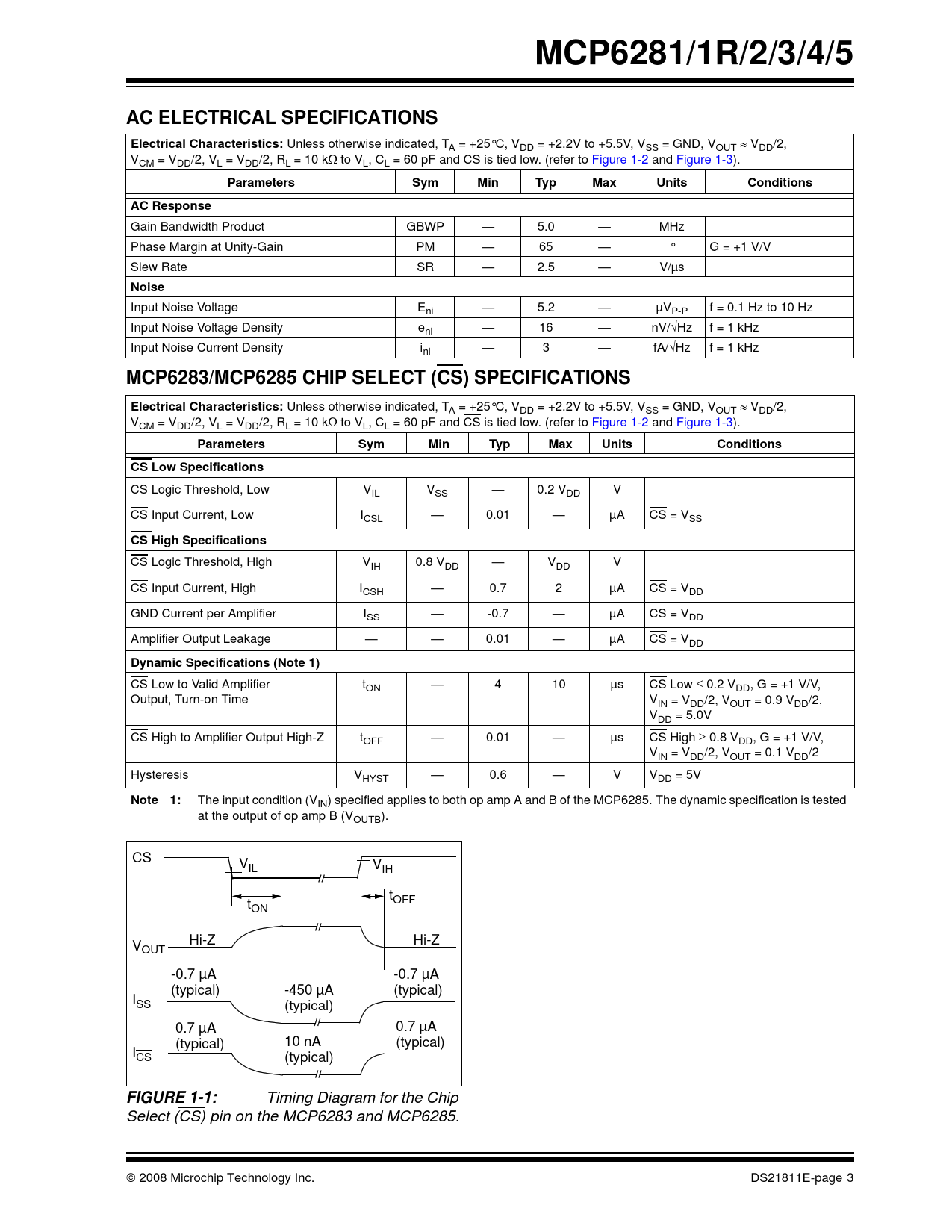 | Pages / Page | 36 / 3 — MCP6281/1R/2/3/4/5. AC ELECTRICAL SPECIFICATIONS. Electrical … |