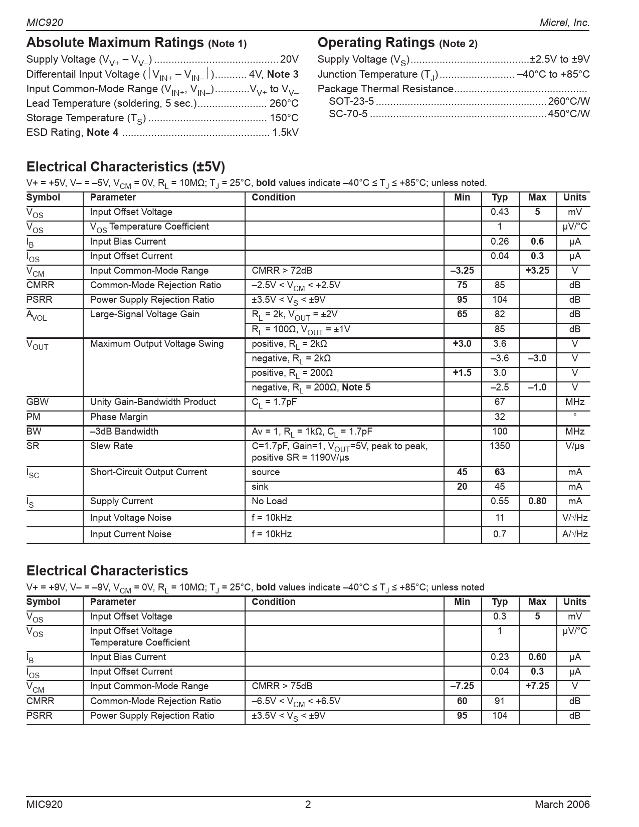 MIC920 Micrel, Inc.