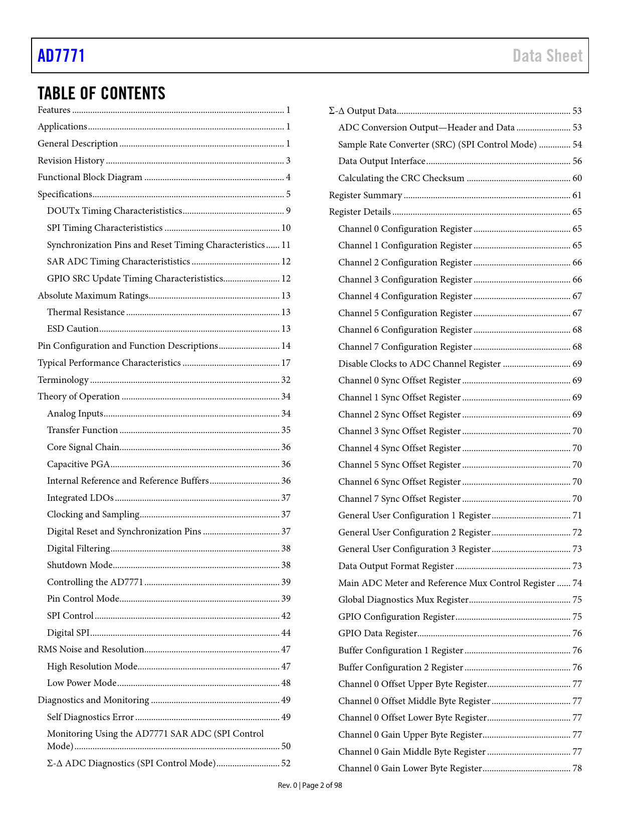 AD7771 Data Sheet TABLE OF CONTENTS