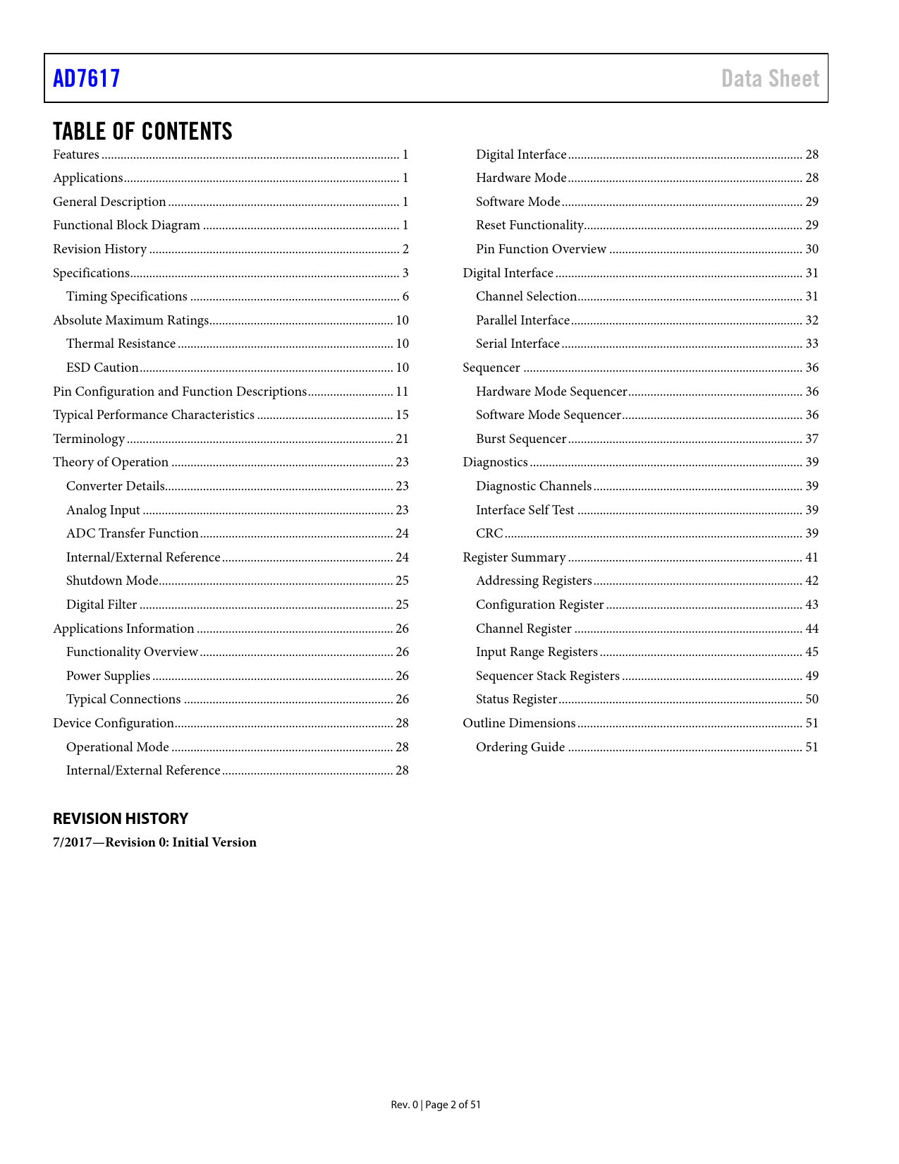 Pages / Page52 / 3 — AD7617. Data Sheet. TABLE OF CONTENTS. REVISION HISTORY. 7/2017—Revision …
