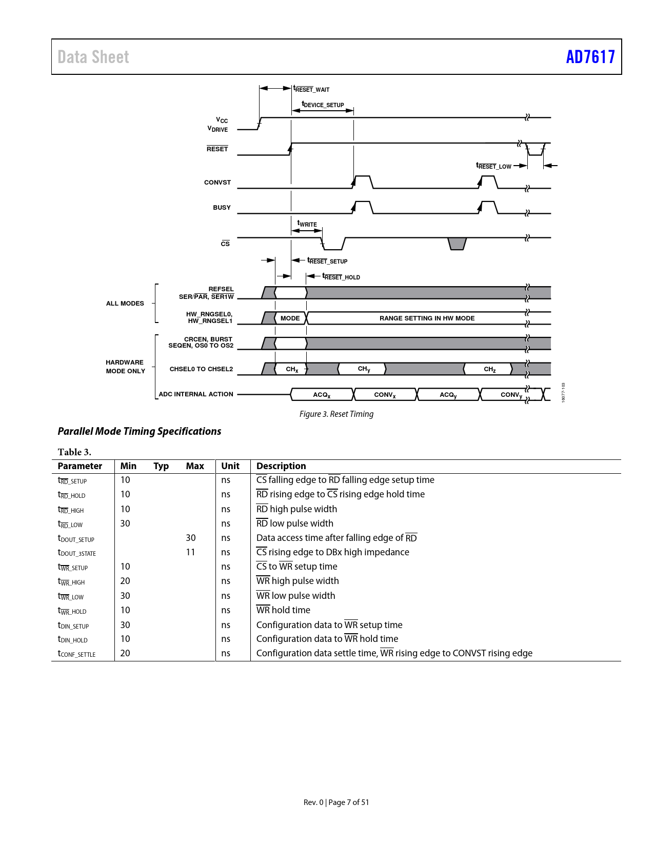 Data Sheet. AD7617. RESET_WAIT. DEVICE_SETUP. VCC. VDRIVE. RESET. RESET_LOW. CONVST. BUSY. tWRITE. RESET_SETUP. RESET_HOLD. REFSEL. SER/PAR, SER1W