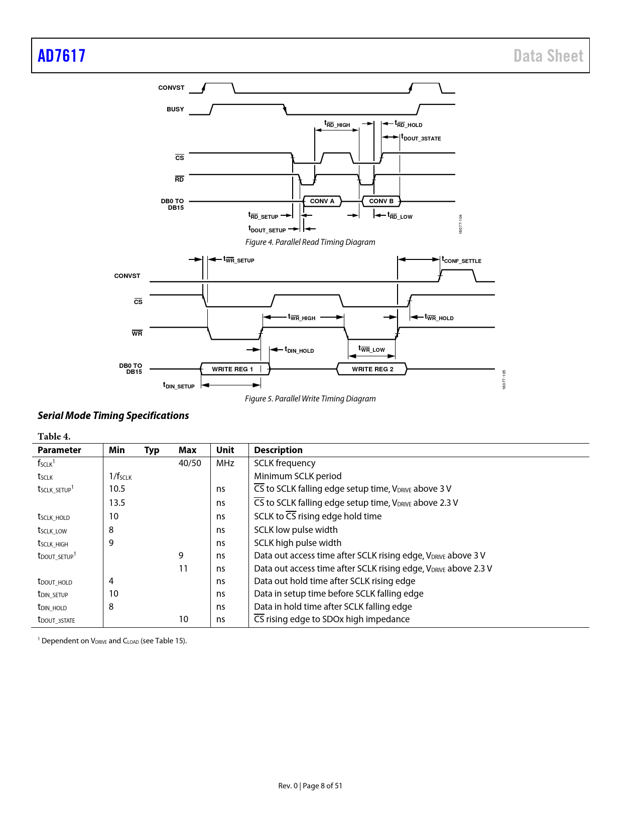 AD7617. Data Sheet. CONVST. BUSY. RD_HIGH. RD_HOLD. tDOUT_3STATE. DB0 TO. CONV A. CONV B. DB15. RD_SETUP. RD_LOW. tDOUT_SETUP. tWR_SETUP