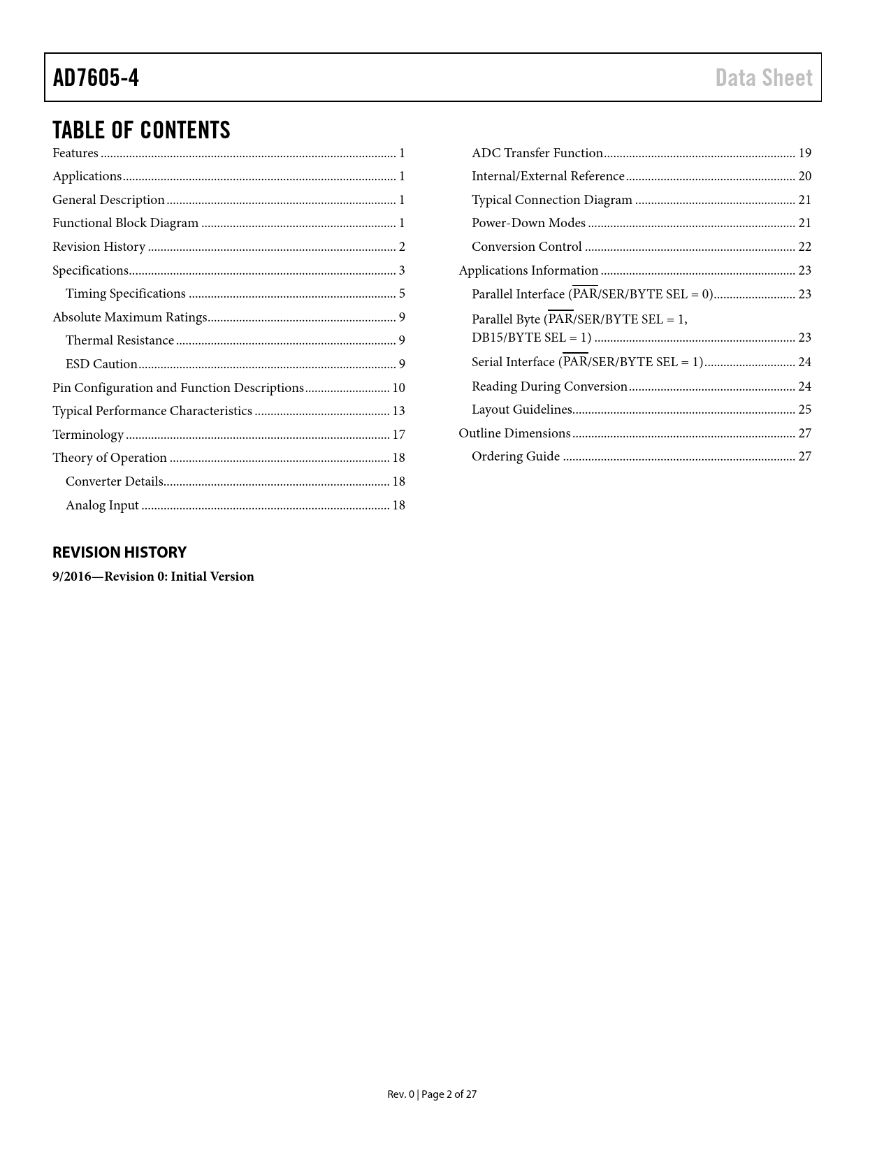 AD7605-4 Data Sheet TABLE OF CONTENTS REVISION HISTORY 9/2016—Revision 0: Initial Version