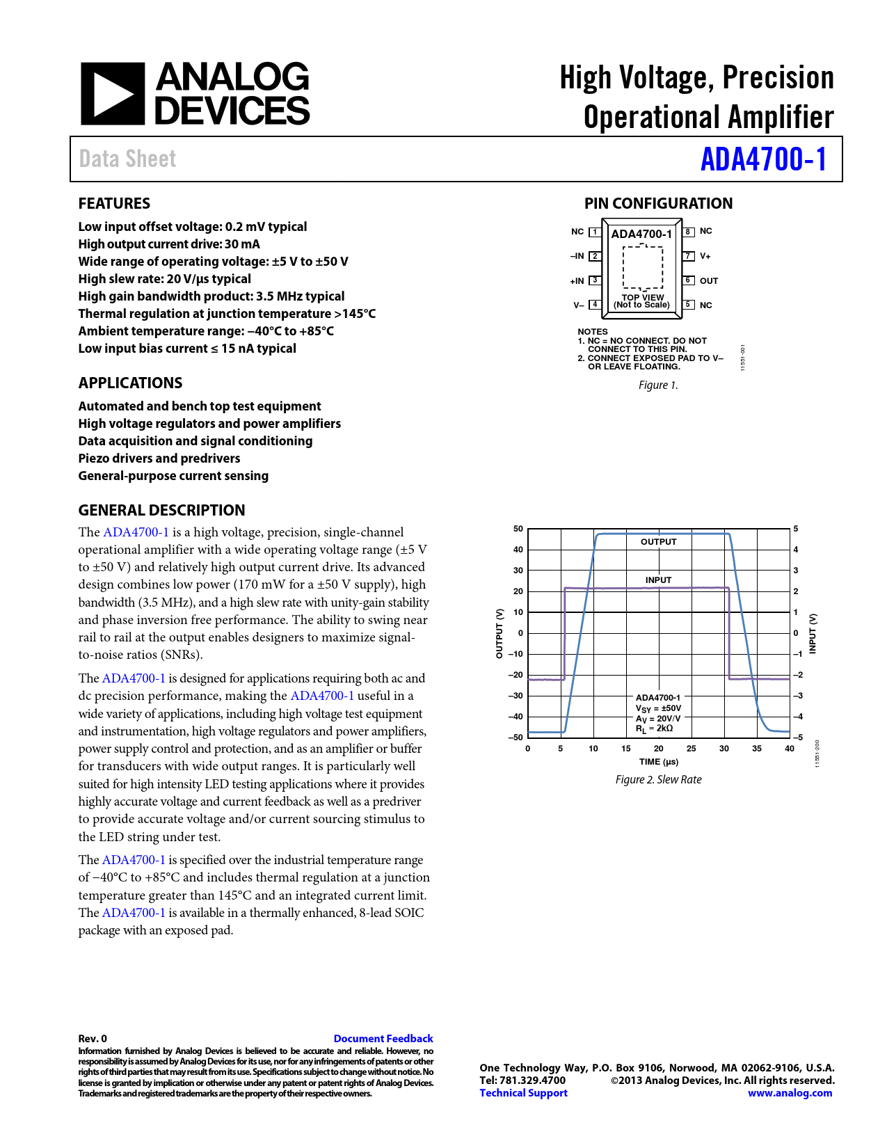| Pages / Page | 29 / 1 — High Voltage, Precision. Operational Amplifier. Data Sheet. ADA4700-1. … |