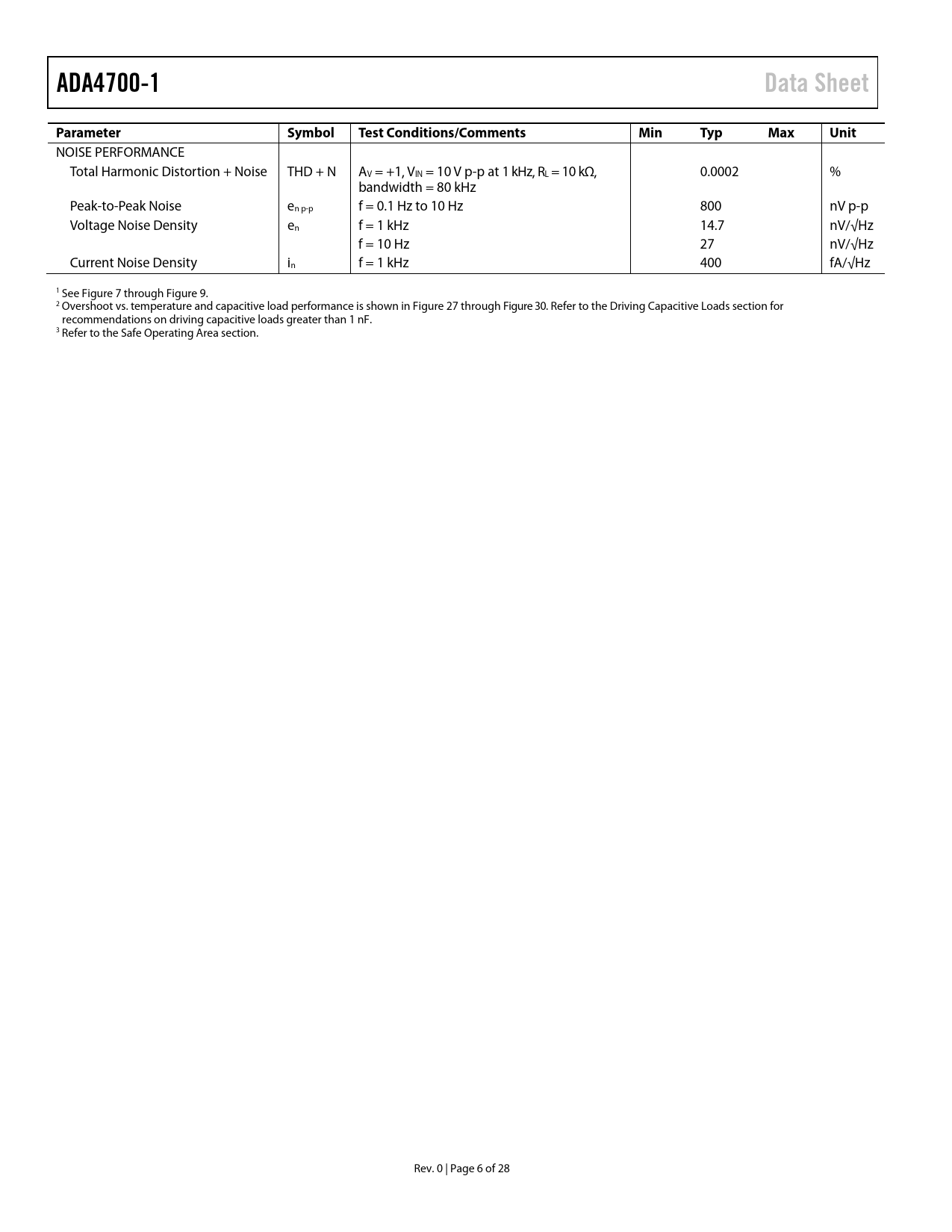 Pages / Page29 / 7 — ADA4700-1. Data Sheet. Parameter. Symbol. Test Conditions/Comments. Min. …