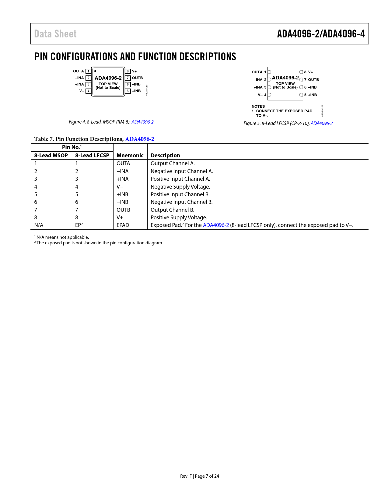 Pages / Page24 / 7 — Data Sheet. ADA4096-2/ADA4096-4. PIN CONFIGURATIONS AND FUNCTION …