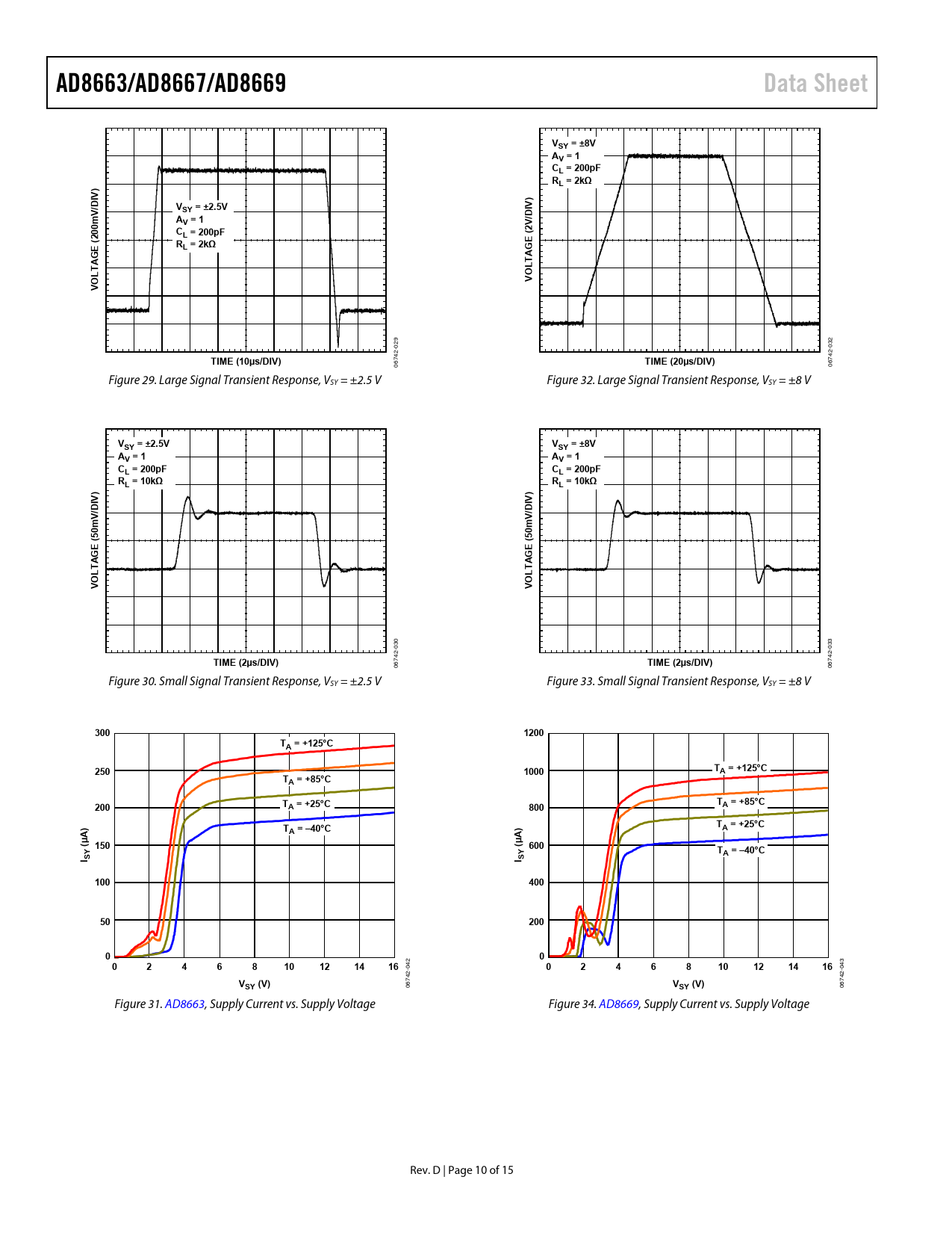 AD8663/AD8667/AD8669. Data Sheet. VSY = ±8V AV = 1 CL = 200pF R. L = 2kΩ. V /DI. VSY = ±2.5V. IV). AV = 1. 2V/. L = 200pF. 200m. L O