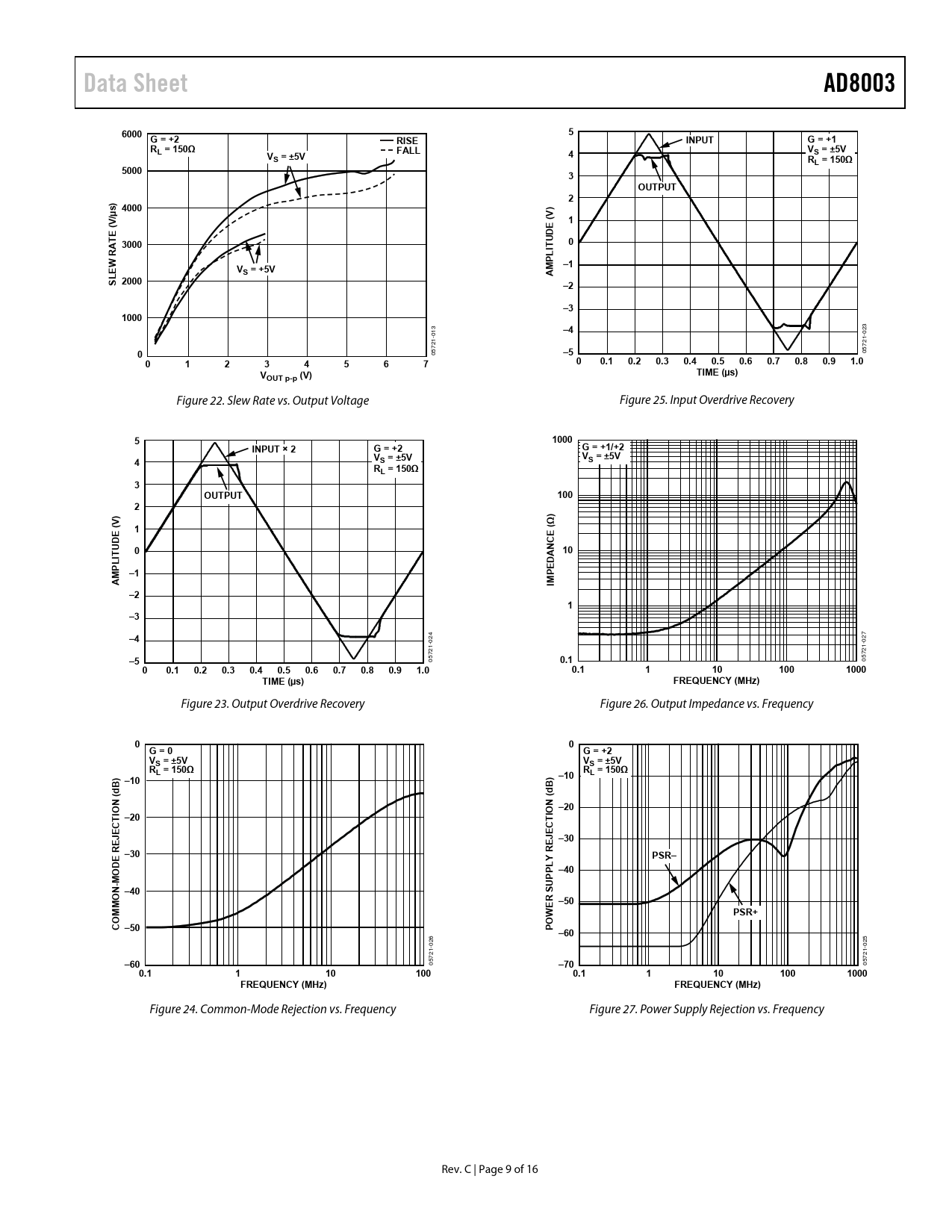 Data Sheet. AD8003. 6000. G = +2. RISE. INPUT. G = +1. RL = 150Ω. FALL. S = ±5V. 5000. OUTPUT. s) 4000. E (. A 3000. PL –1. S = +5V. SL 2000. 1000. 0.1. 0.2. 0.3