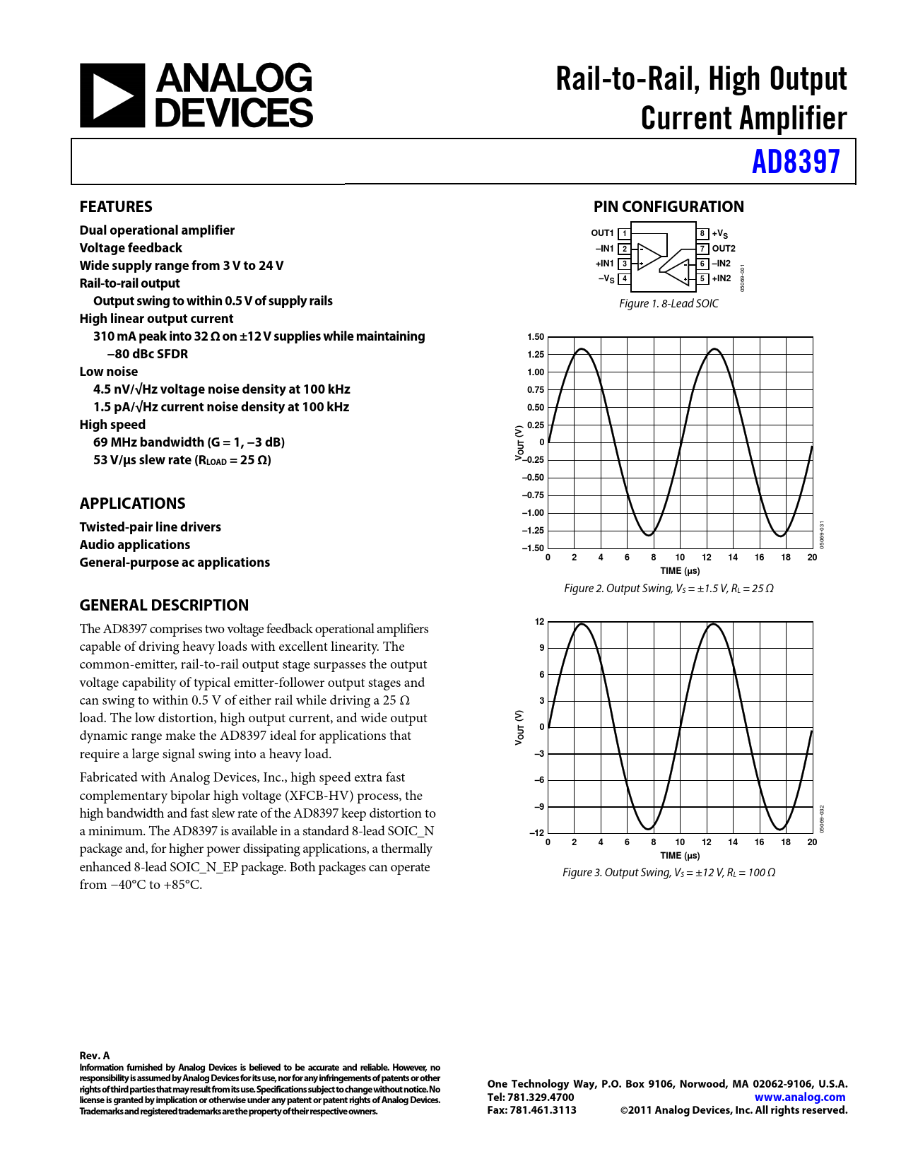 high bandwidth and fast slew rate of the AD8397 keep distortion to -032 69 a minimum. The AD8397 is available in a standard 8-lead SOIC_N